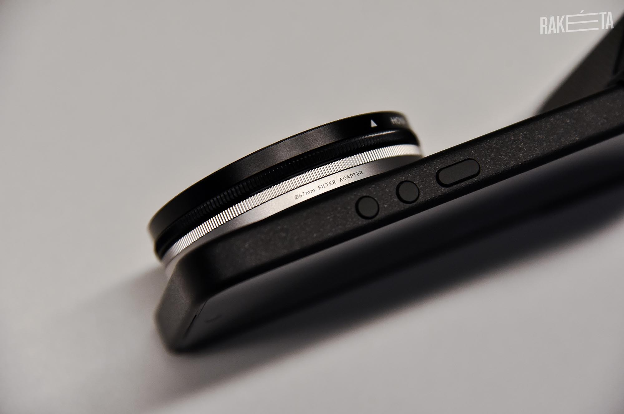 Kapunk vele egy masszív tokot, amivel a készülék megtartja a fényképezőgépes dizájnt, de a kamerarendszer gyűrűjét egyszerűen kicserélhetjük egy másikra, amire egy szabványos 67 milliméteres objektív-szűrőlencsét tekerhetünk.