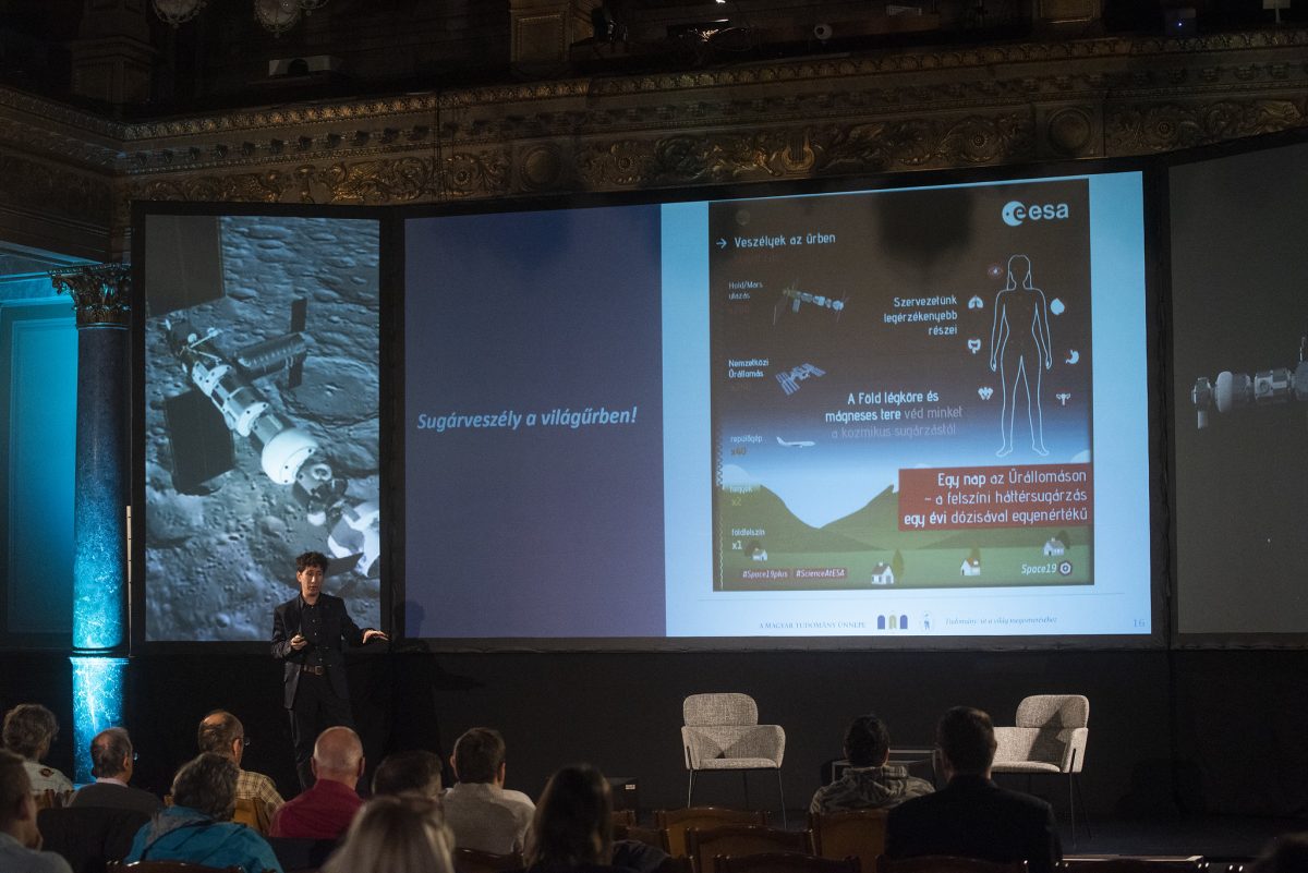 A magyar űrhajósprogram kapcsán előadása végén Zábori kifejtette, hogy a Hunor célja elsősorban az, hogy űrbeli infrastruktúrához juttassa Magyarországot, amire szerinte többek között azért van szükség, hogy a jövőben is biztosítani tudják a dózismérő sikeréhez hasonló eredményeket a magyar űripar számára. "Ez az űrszektorban mindig az egyik legnagyobb nehézség, hogy van egy ügyes cég, ami megépít valamit, de akkor állnak vele szóba, ha azt tudja mondani, hogy ez már működött a világűrben" - vázolja Zábori, aki szerint a Hunor pontosan ezt fogja nyújtani, ezáltal versenyképességet ad a magyar űrszektor kezébe. Arra a kérdésre, hogy elképzelhető-e, hogy egyszer egy magyar űrhajós a Holdra is eljusson, Zábori - aki az Európai Űrügynökség emberes holdprogramját előkészítő testületnek is a tagja - úgy reagált, hogy bár elsőre ez nem tűnik reálisnak, de mivel az ESA éppen most választja ki azokat az asztronautákat, akik közül a tervek szerint 2030-ig akár hárman is eljuthatnak az égitestre, így még ez sincs teljesen kizárva.