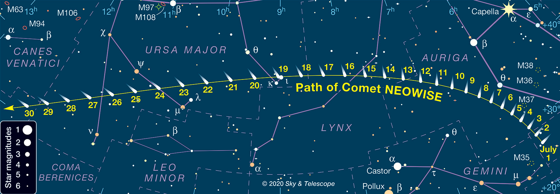 A NEOWISE-üstökös azonosításához az MCSE nyomán a Sky and Telescope keresőtérképét ajánljuk, mellyel jól tervezhető a megfigyelés, nyomon követhető az égitest pályája.