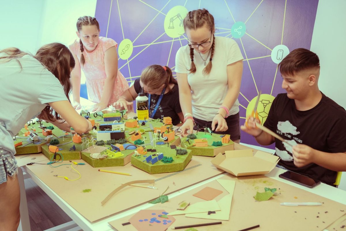 A Maker's Red Box nyári táborainak kaposvári állomásán született meg a fentebb látható Greenworld City névre keresztelt városka makettje, melyet a diákok Magyarországon képzeltek el – 40 év múlva. A jövőváros már csaknem készen volt, amikor személyesen is megtekinthettük, így már első ránézésre is nyilvánvalóvá vált, hogy a gyerekek által megálmodott és közösen létrehozott városban nagy hangsúlyt fektettek a környezetvédelemre, az innovációra, illetve a közösségi terekre is.