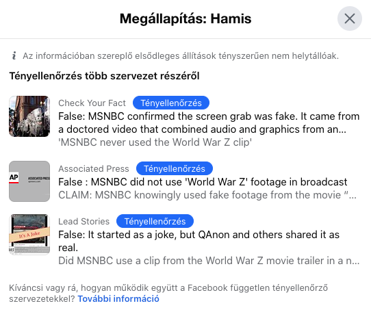 A Facebook regionális képviseletétől megtudtuk, hogy magyar híreket még nem ellenőriznek, itthon nincs külső tényellenőrző partnerük, csak a külföldi szervezetek által megvizsgált információkkal találkozhatunk. Ezek a szervezetek egyébként az amerikai Poynter Intézet által kidolgozott elvek mentén dolgoznak, amelyek a pártatlanság mellett például az ilyen vállalatok finanszírozásának átláthatóságától is rendelkeznek. Ha egy felhasználó nem ért egyet a döntésükkel, kérheti tőlük annak felülvizsgálatát.