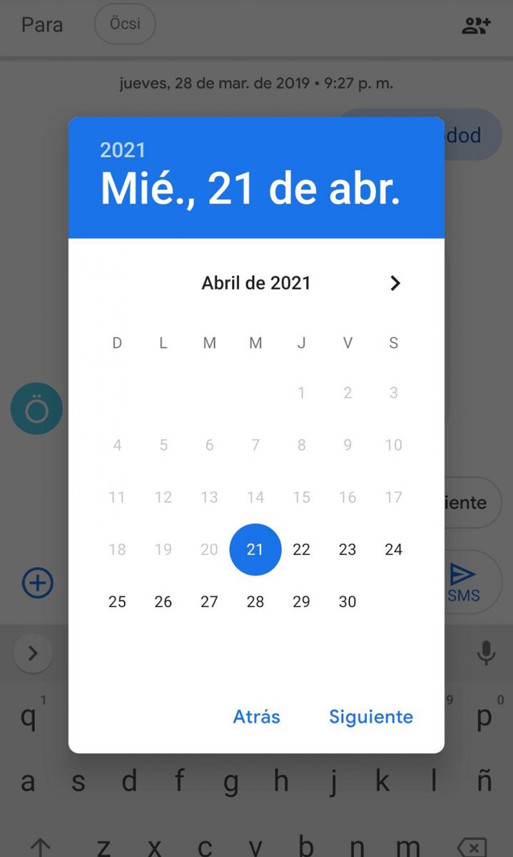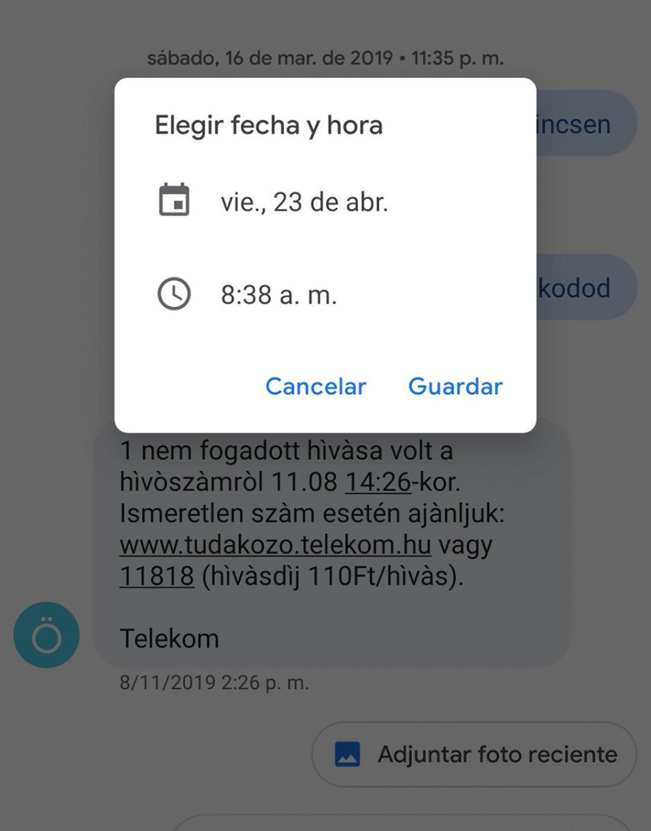 Kezdésként nyissunk egy új beszélgetést a Google Messages applikációban. Válasszuk ki a címzettet, pötyögjük be mondanivalónkat, majd pár másodpercig tartsuk lenyomva a küldésre szolgáló kis nyíl gombot a jobb alsó sarokban.