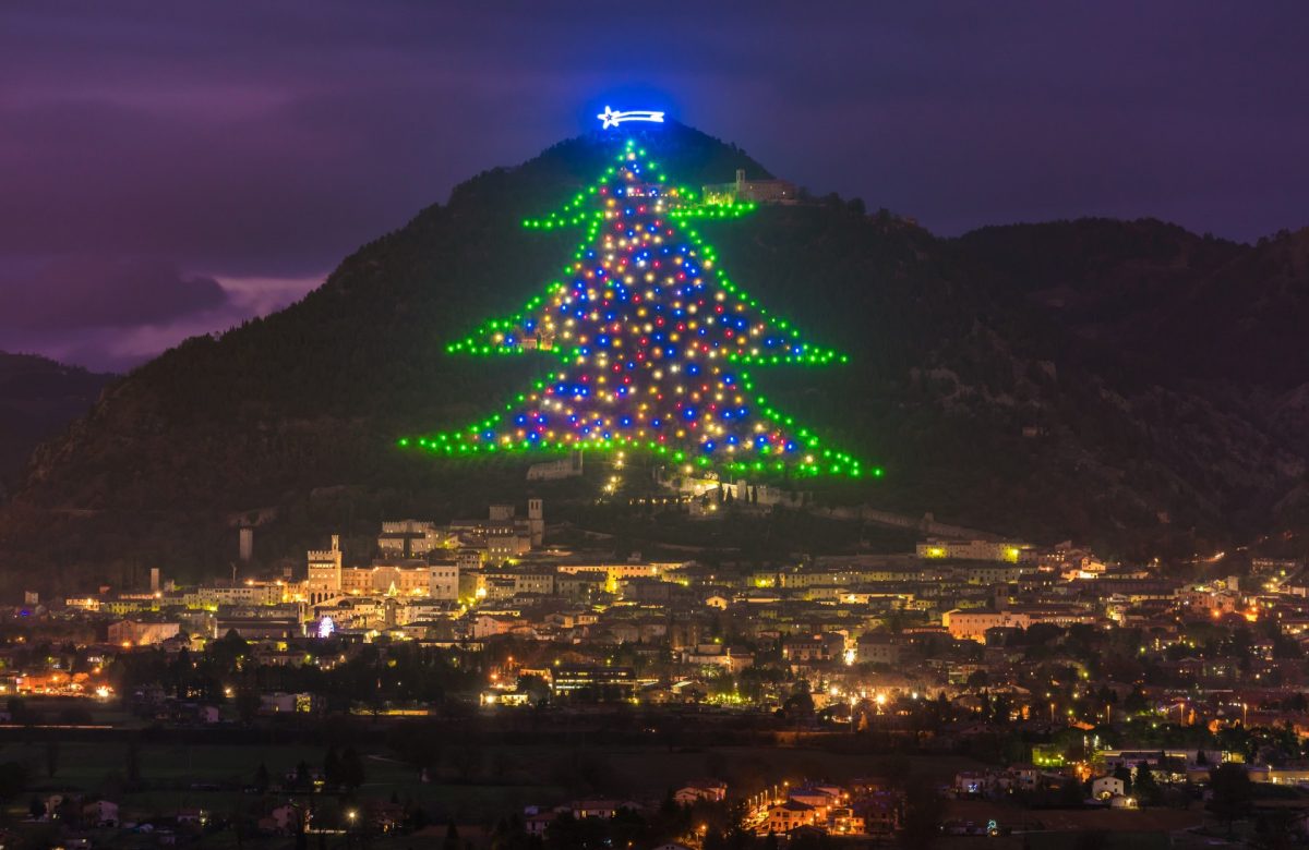Bár technikailag nem karácsonyfa, az olaszországi Gubbióban 1981 óta meghonosodott ünnepi dekoráció kétségkívül a legnagyobb karácsonyfának kinéző dolog a világon: a Monte Ingino oldalán elterülő díszítés 450 méter széles és 750 méter magas, így állítólag 50 kilométerről is tisztán látható.
