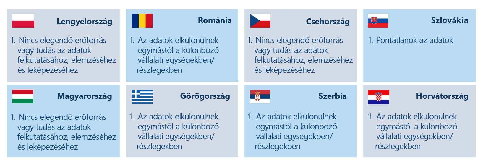 A kutatás során a válaszadók csaknem háromnegyede (hetvenkét százaléka) az adatkezelési megoldásokat nevezte meg a legfontosabb eszközként a szervezet céljainak eléréséhez. Ennek oka, hogy a mesterséges intelligencia és gépi tanulás által vezérelt eszközök segítségével elemzett és szakszerűen kezelt magas minőségű adatok lehetővé teszik a vállalatok számára a gyorsabb és pontosabb üzleti döntéseket meghozatalát. Ez azt eredményezi, hogy a vállalatok szervezettebbé válnak és jobban meg tudnak felelni a piaci elvárásoknak. Ugyanakkor a közép-kelet-európai régió számos szervezete nem tudja hasznosítani az összegyűjtött adatokban rejlő lehetőségeket, mert elárasztja őket a kezelendő adatmennyiség: