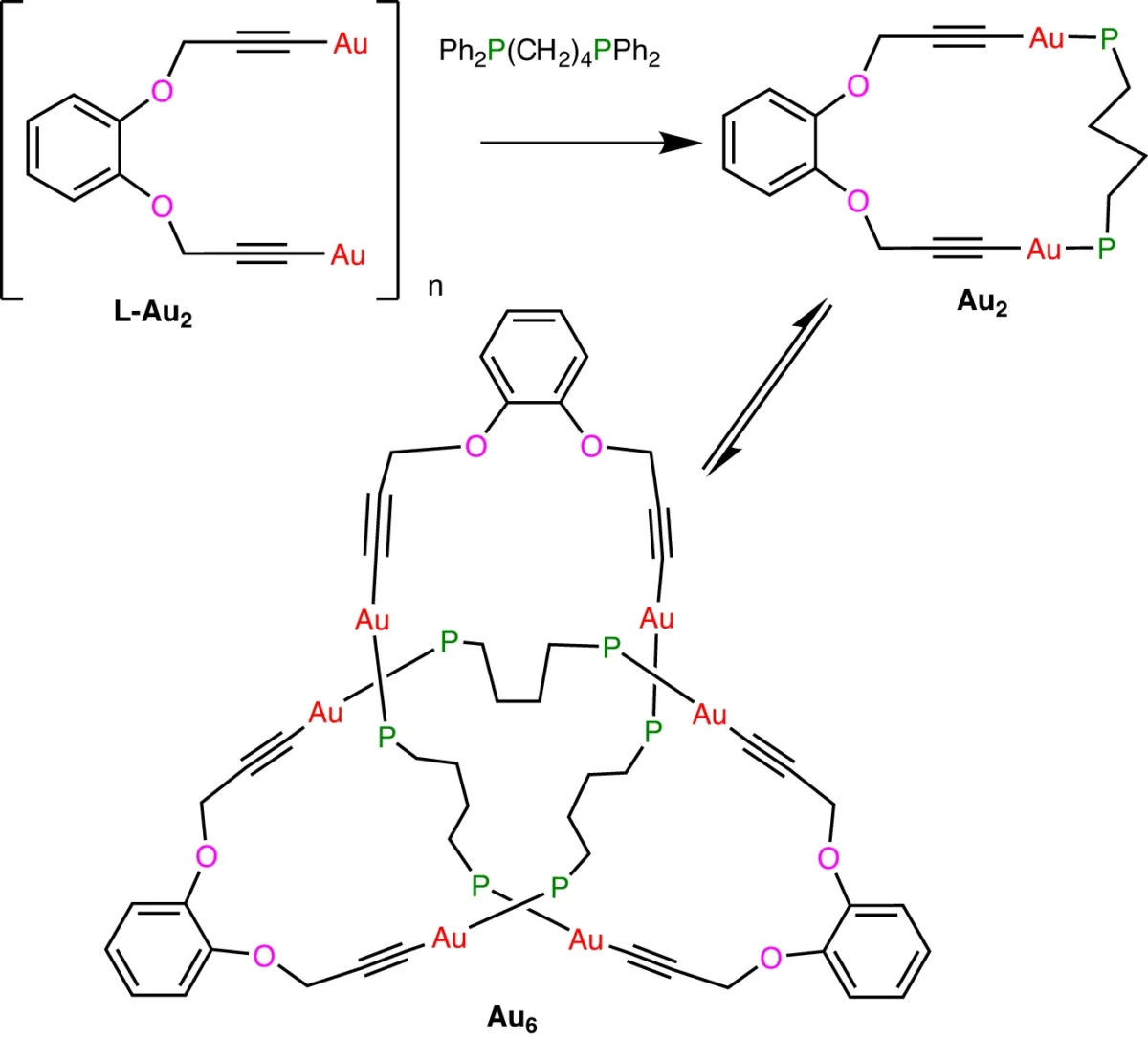A csomók feszességének tekintetében is rekorddöntőnek bizonyult az újonnan létrehozott struktúra: az úgynevezett BCR (backbone crossing ratio, amit az atomok és a keresztezések száma alapján mérnek) értéke 18, míg a 69 atomos csomó BCR értéke 23 volt. A legkisebb és legszorosabb csomó digold(I)-diacetilid és difoszfin ligandumokból jött létre: ezek kombinációja korábban nem csomókat, hanem arany katenán láncokat (egymáshoz kapcsolódó gyűrűkből álló vegyületek láncait) eredményezett, ezért a szerkezet megjelenése meglepetést jelentett a kutatók számára is.