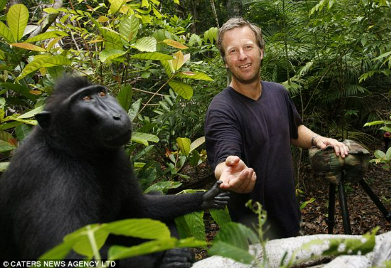 Ekkor történt ugyanis, hogy David John Slater, brit természetfotós Indonéziába utazott azzal a céllal, hogy ott a veszélyeztett fajhoz tartozó üstökös makákókról készítsen fényképeket. Az akkor 46 éves Slater bevette magát a nemzeti park területén élő majmok közé , amelyek nem kimagasló intelligenciájukról híresek, mint mondjuk a csimpánzok, azonban rendkívül kíváncsiak. A fotós hamar összebarátkozott az állatokkal, amelyek – tekintve, hogy addig szinte egyáltalán nem érintkeztek emberekkel – nem érezték magukat fenyegetve Slater jelenléte miatt, így a férfi nyugodt körülmények között fotózhatta őket. Az események akkor vettek meglepő fordulatot, amikor a majmok kisajátították az átmenetileg gazdátlan, fotós által néhány percre magára hagyott fényképezőgépet.