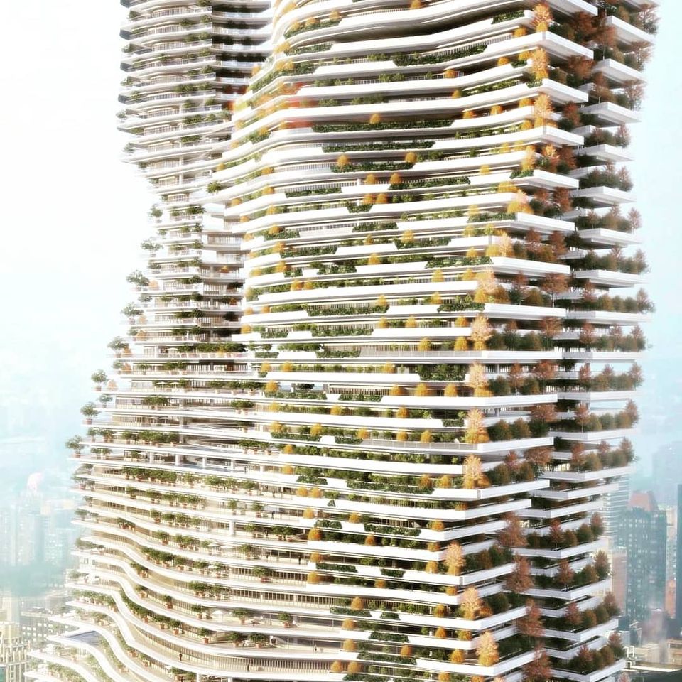 Az épületnek egyértelműen megjelenik épületszobrászati értéke is, amint az égre törő karcsú sziluettjével felnyújtózkodik az East River medréből. A tekergő kanyargó üveghomlokzat vakolatok, saját medencés apartmanokkal, teraszos lejtőkkel és rengeteg, rengeteg fával beültetett erkélyekkel hullámzik minden szinten, összességében szikrázó smaragdzöld színben pompázva.