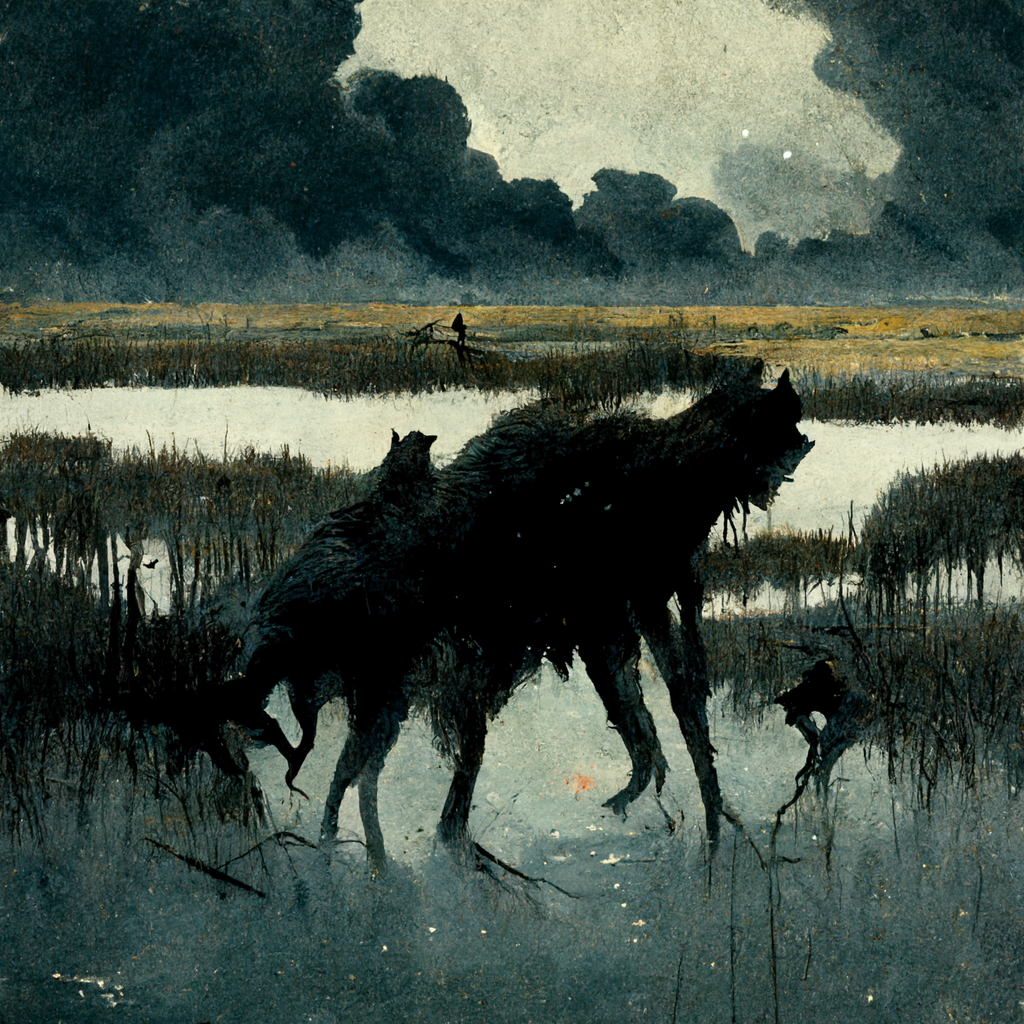 Ezt követően arra, ahogy egy erős ember küzd a lápon farkasokkal.