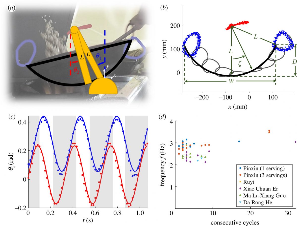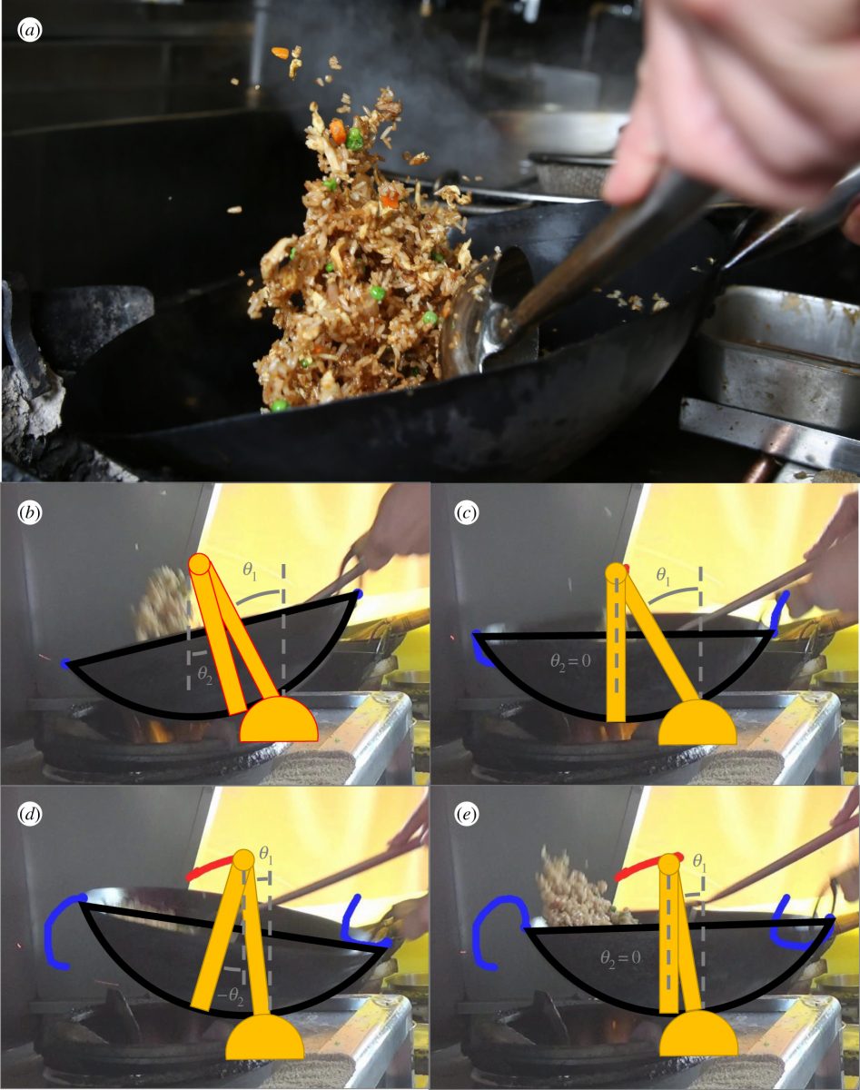 Egy videofelvétel segítségével, mely öt kínai éttermekben dolgozó séfről készült, a fizikusok megvizsgálták a rizs feldobásához használt ismétlődő mozdulatokat. A szakácsok egy jellegzetes mozdulatsort hajtottak végre, amely másodpercenként körülbelül háromszor ismétlődött - jelentették a kutatók február 12-én a Royal Society Interface folyóiratban. Mindegyik mozdulatuk magában foglalta a wok előre-hátra csúsztatását, miközben egyidejűleg oda-vissza ringatták azt, a tűzhely peremét használva fordulópontként.