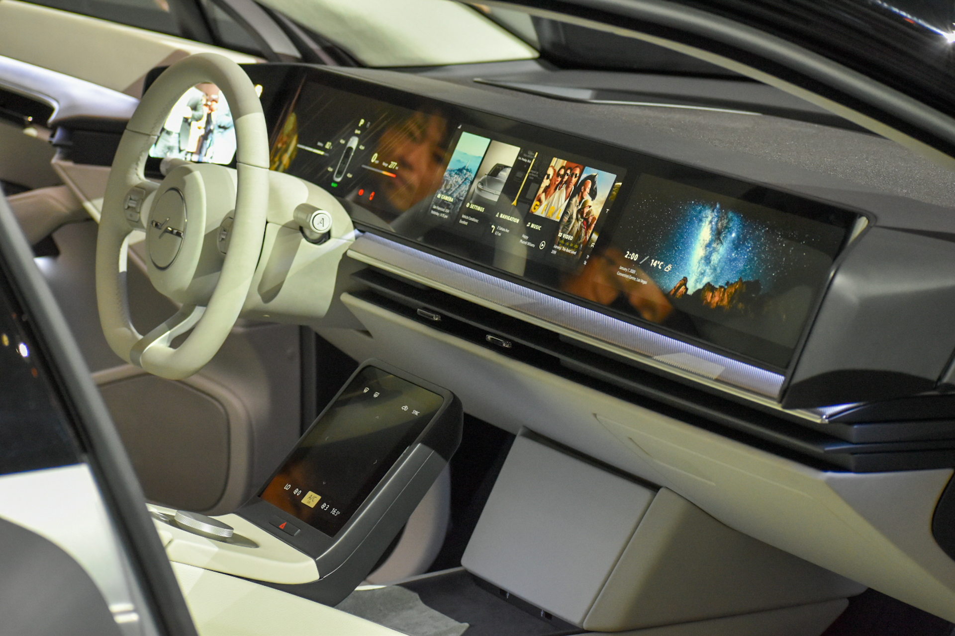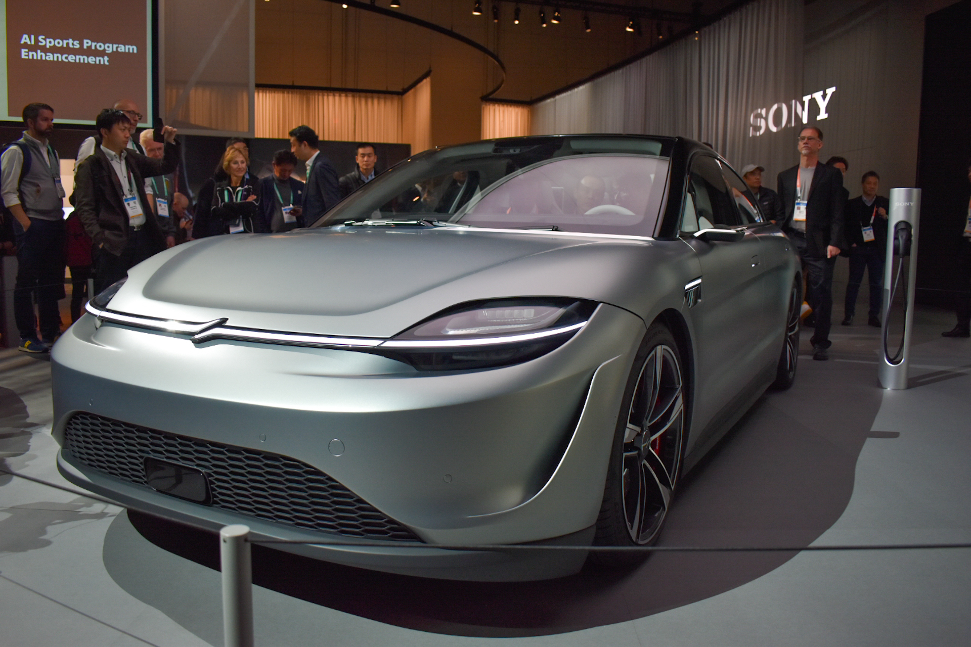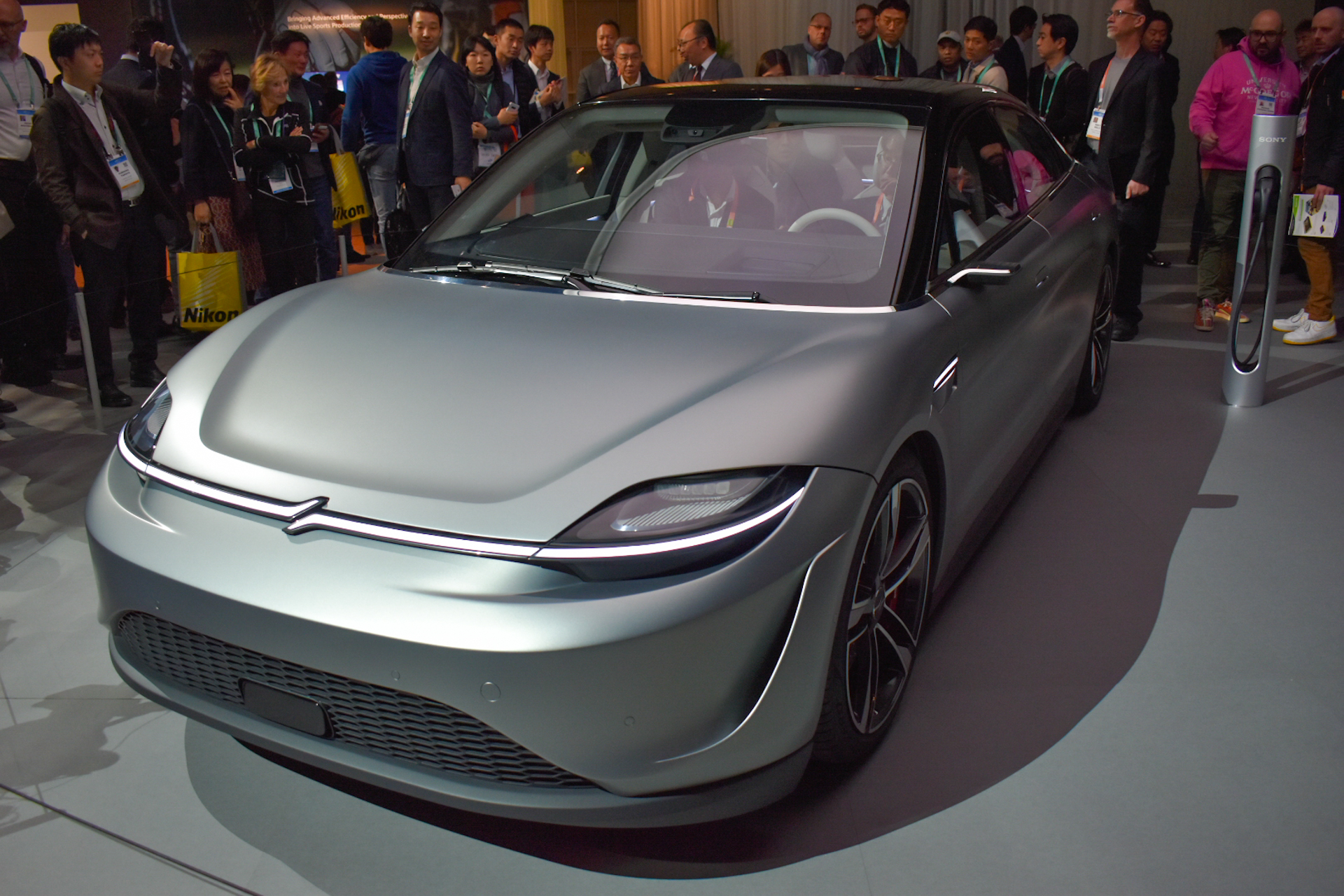 A hűtőrácsot persze inkább hívhatnánk díszrácsnak, hiszen az autó teljesen elektromos, a motort tehát nemigen kell hűteni. Ez amúgy az egyik fontosabb dolog, ami nem Sony az autóban, a 200 kW-os (268 lóerős) elektromos duál motort a Magna nevű autóalkatrész-beszállító gyártotta le, ahogyan magát a platformot is. Nagyrészt tehát nekik köszönhető, hogy a kocsi mindössze 4,8 másodperc alatt gyorsul százra, a végsebessége pedig 240 km/h-ban tetőzik.
