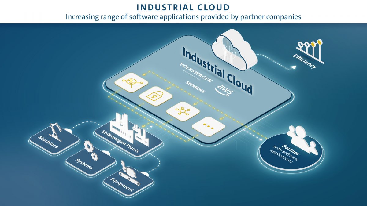 A Volkswagen az Amazon informatikai leányvállalatával (Amazon Web Services, AWS) és a Siemens-szel együttműködésben "Industrial Cloud" néven olyan felhőalapú együttműködési IT-platformot nyitott, mely segítségével minden korábbinál hatékonyan dolgozhat össze beszállítóival és külső fejlesztő partnereivel.