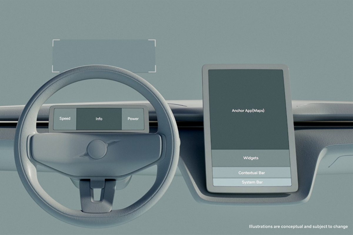 Feszülten vártuk a bejelentést: az új Volvókban vajon a műszerfali tablet már nagyobb lesz a szélvédőnél? De nem. Az Android-alapú új HMI lényegében ugyanolyannak tűnt a prezentáción, mint a mai cucc: egy nagy központi tablet, egy kicsi, lényeges infókat megmutató kijelző a kormány mögött és egy opcionális Head-Up Display: