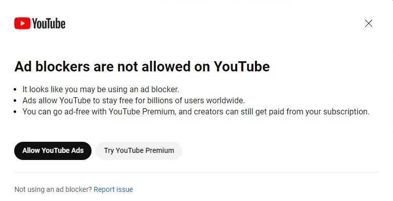 Az érintett felhasználók képernyőfotóiból az derült ki, hogy a YouTube büntetni próbálja azokat, akik "adblockert", vagyis reklámblokkoló kiegészítőt használnak a böngészőjükben, ezzel elkerülve a videók előtt és közben felbukkanó hirdetéseket. A képernyőn váratlanul megjelenő üzenetben gyakorlatilag ultimátumot adott a YouTube, miszerint a felhasználók vagy kikapcsolják a hirdetésblokkolót, vagy előfizetnek a YouTube Premium szolgáltatásra. Amennyiben egyiket sem választották, egyáltalán nem tudták folytatni a videó megtekintését.