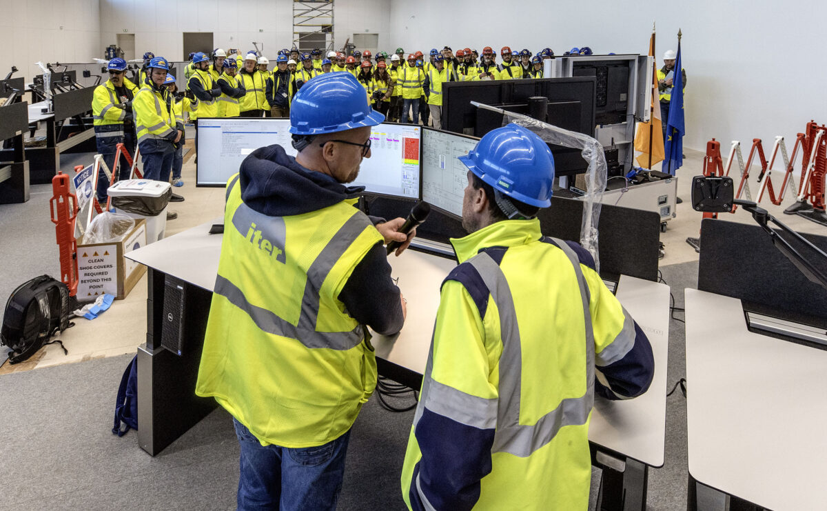 fél kilométernyire lévő pumpát indították el, amely a RPC (reactive power compensation installation) hűtőrendszerében játszik szerepet. A fő vezérlőterem 750 négyzetméteres területén egyelőre egyetlen asztal és három kijelző található csak, de lassan benépesül, ahogyan az ITER közelebb kerül a beiktatáshoz. A reaktor működése idején a kijelzők már egy 120 négyzetméteres falat alkotnak majd, ahol minden fontos információ megjelenik a tokamak működéséről. A fő vezérlőterem helyét szükség esetén a tartalék vezérlőterem veszi át, ami egy szeizmikusan védett épületben kap helyet, hogy a reaktor működését minden körülmények között biztosíthassák.