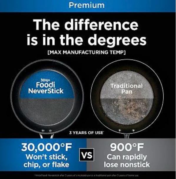 A per középpontjában a Ninja NeverStick Premium főzőedénykollekció áll, egy olyan edény- és serpenyőcsalád, amelyet a cég úgy hirdet, hogy a speciális gyártási eljárásának köszönhetően az edényekben gyakorlatilag sosem tapad le az étel. A SharkNinja szerint a serpenyőt több mint több mint 30 ezer Fahrenheitnek, azaz 16 ezer Celsius-foknál is nagyobb hőnek teszik ki az előállítása során, ez pedig "plazma kerámiarészecskéket" olvaszt a serpenyő felületére, "szuperkemény, texturált felületet hozva létre, amely a kiváló kötés érdekében összekapcsolódik exkluzív bevonatukkal". A hasonló, "hagyományos" tapadásmentes edényeket gyártásuk során átlagosan 480 fokon kezelik.