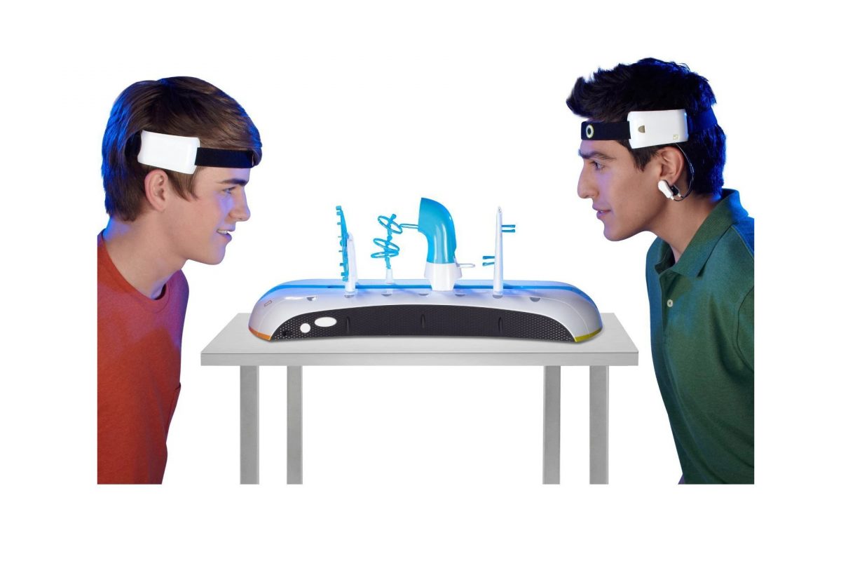 Az agy-gép interfész kipróbálása után a kocsi mellett szolgálatot teljesítő menedzsert sikerült meglepnem azzal, hogy elmeséltem neki: én ilyen játékot játszottam már, sőt: van is otthon gondolattal irányítható játékom. Az úr ugyanis nem ismerte a Mattel Mindflex nevű termékét, amely szintén egy felcsatolható fejpánttal működik. Ebben van egy szenzor, amely az agytevékenység elektromos jeleit méri egy adott ponton és ebből generál egy vezérlőjelet az asztali játék számára. Itt pedig egy kis tölcséres ventilátor a koncentrációnk erősségétől függően hol erősebben, hol gyengébben fúj alulról egy könnyű golyócskát, ami így hol magasabban, hol alacsonyabban lebeg a játéktér felett. A fúvónyílást egy kézi tárcsával lehet végigtolni egy pályán, a golyócskát pedig mindig a megfelelő magasságba kell emelni az agyunkkal ahhoz, hogy pont át tudjon bújni az akadályként kihelyezett karikákon: