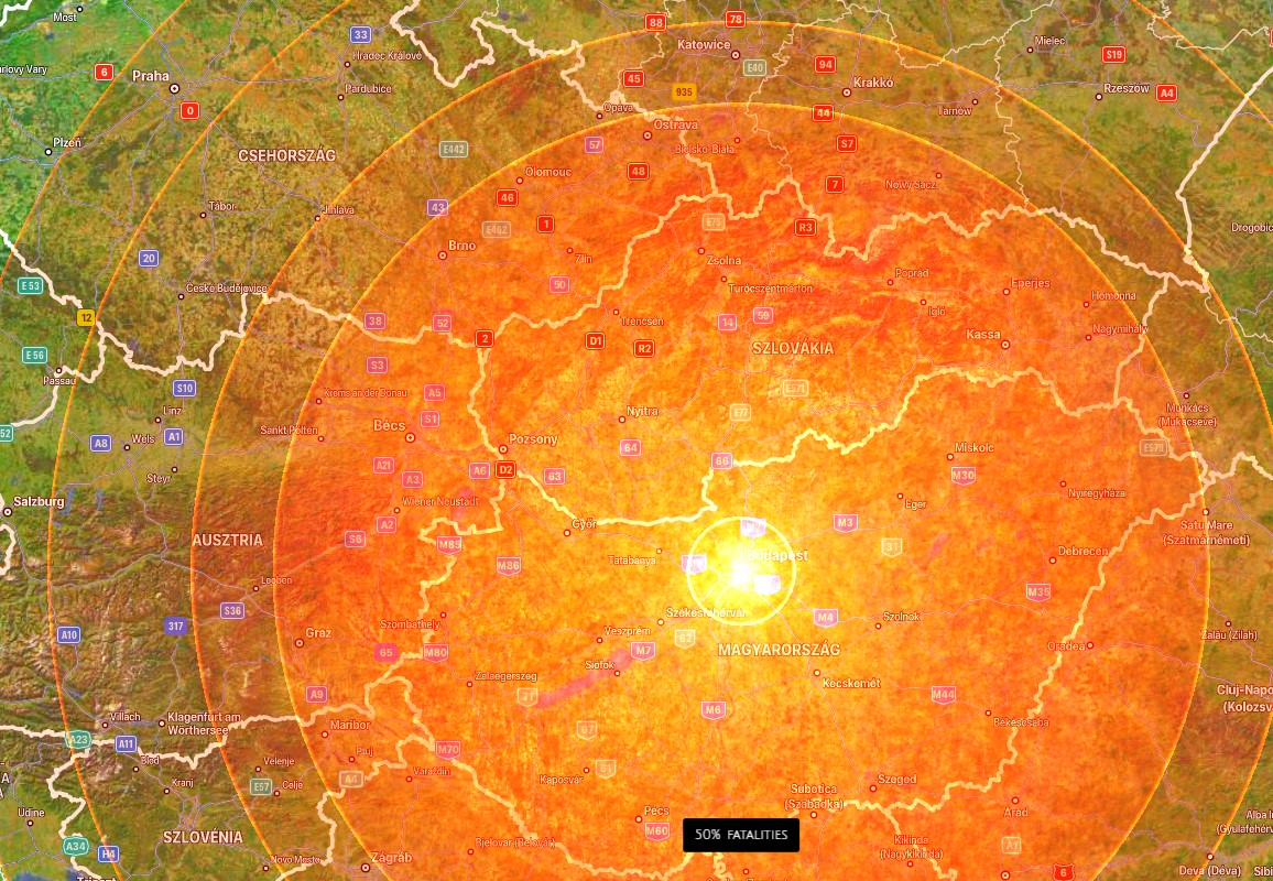 A hangrobbanás nyugatra Münchenig, északi irányba akár Varsóig is elérne. Ez azt jelenti, hogy még Szlovákiában is súlyos tüdősérülést szenvednének el az emberek emiatt, és még a bécsiek is elbúcsúzhatnának a dobhártyáiktól. A sógorék amúgy sem jönnének ki jól ebből a dologból, tekintve, hogy szinte egész Ausztriában ledőlnének az épületek, Münchenben azonban már csak a kisebb lakóházak pusztulnának el.