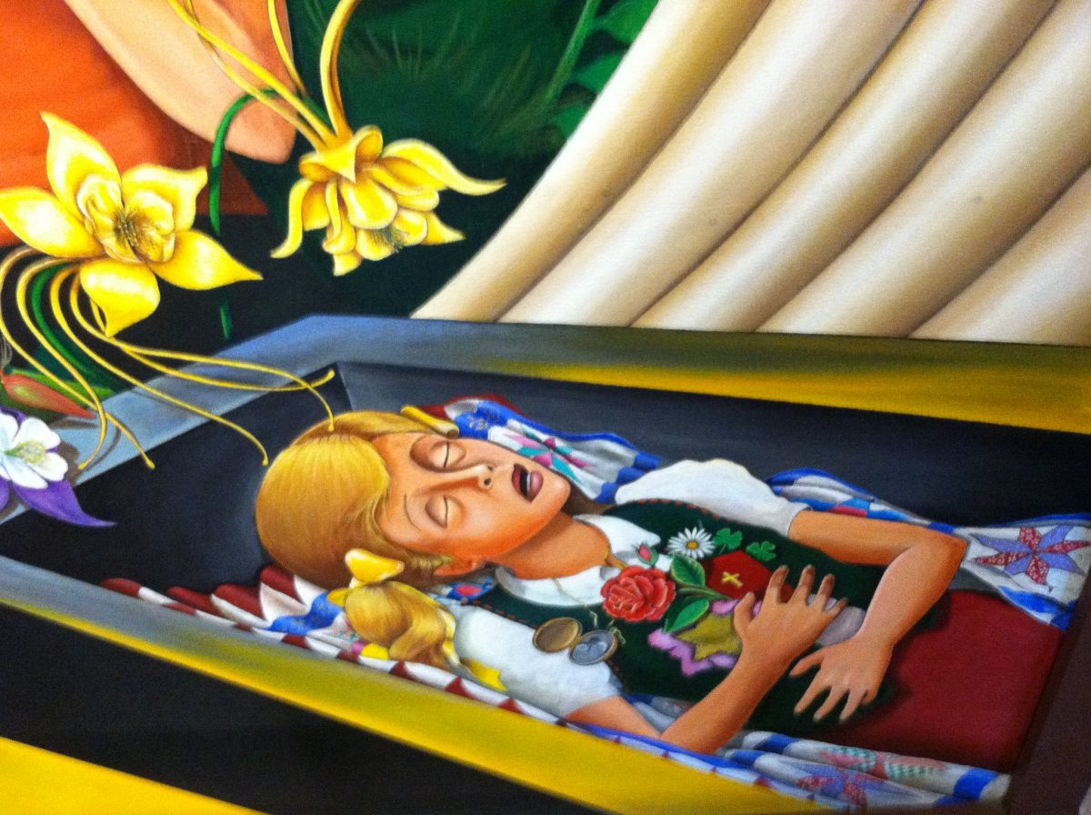 A repülőtér falait Leo Tanguma óriási festményei borítják, melyek a béke, az öröm és a természeti harmónia témáiban születtek, bár valóban akad rajtuk néhány furcsa részlet. Láthatunk koporsóban fekvő lányokat, vagy erdőtűz elől menekülő rémült gyerekeket, másutt egy egyenruhás szörnyeteg galambokat kaszabol a kardjával, a lábainál heverő gyerekek felett. Tanguma úgy nyilatkozott, hogy az emberi történelem során megtapasztalt szörnyűségekből és természetrombolásból merített, de végül az emberiség épp ezeken emelkedik majd felül, hogy maga mögött hagyja őket.