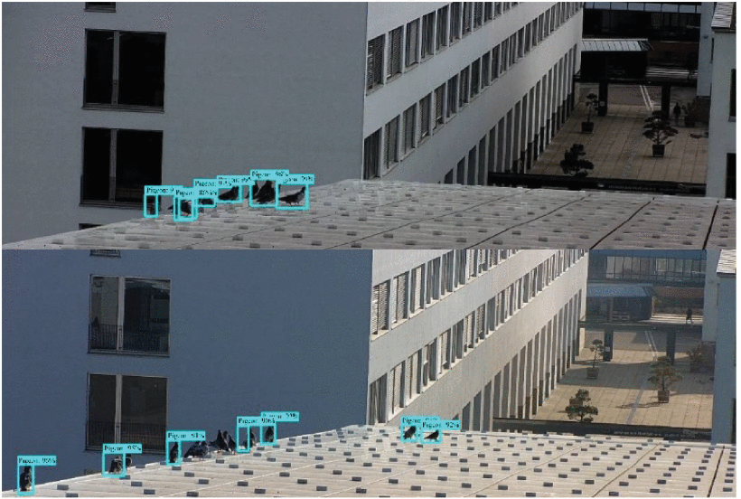 A svájci Lausanne-i Szövetségi Technológiai Intézet (EPFL) munkatársai a technológiát hívták segítségül a madarak távol tartására. Az EPFL rendszere automatikusan felismeri a galambokat, majd drónokat küld a megfelelő helyre, hogy elkergesse őket – számolt be róla az IEEE Spectrum. Egy megfelelő helyre telepített központi állomás egy dedikált, nagy felbontású kamerával több tetőt kísér figyelemmel, a drón – ami jelen esetben egy Parrot Anafi – pedig csak érvényes riasztás esetén száll fel, mivel a folyamatos járőrözés arányaiban véve sokkal kevésbé lenne gazdaságos.