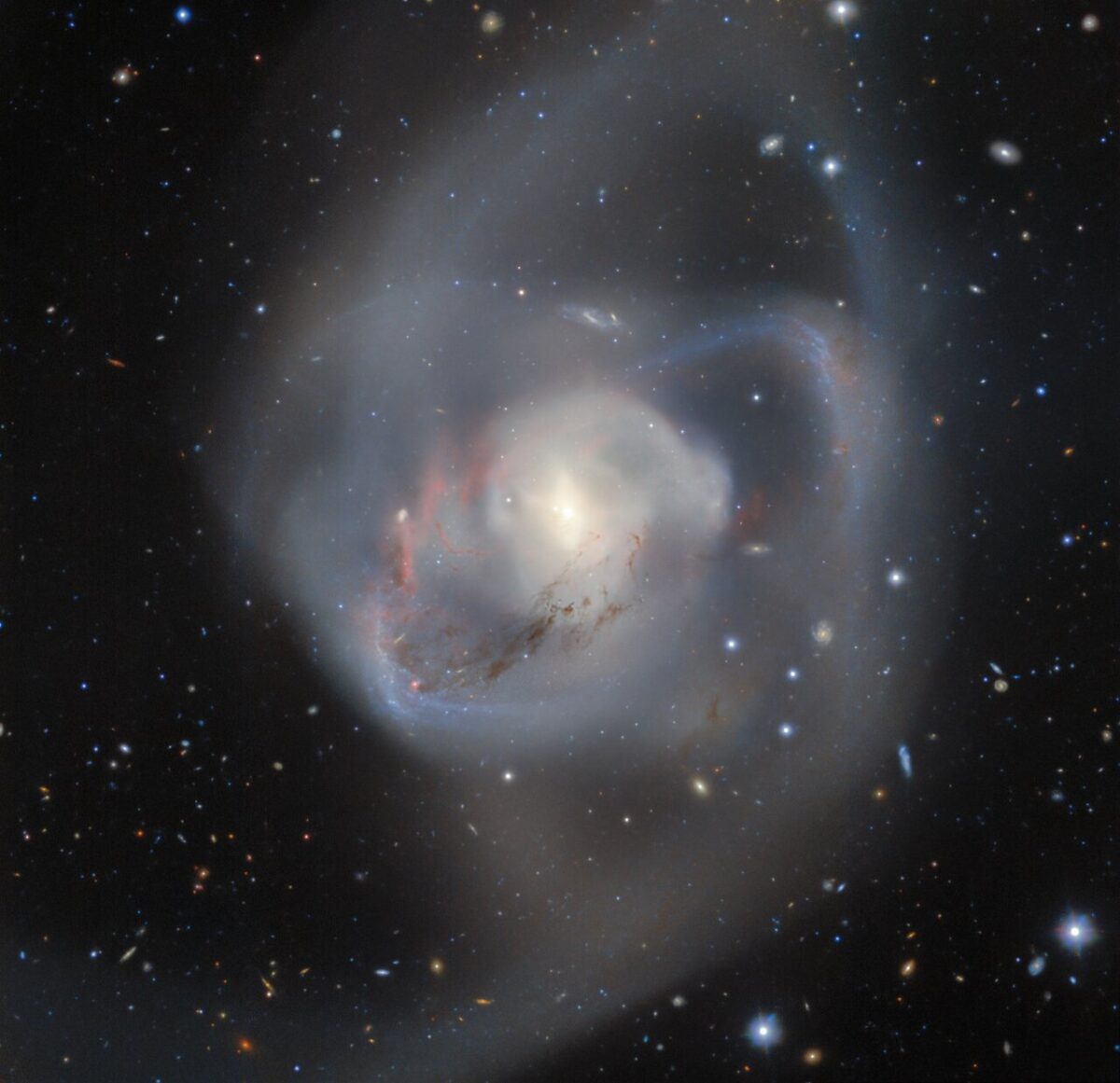Az NGC 7727 galaxist William Herschel fedezte fel 1785-ben, de még több évszázadon át tartogatott meglepetéseket a csillagászok számára. A közepén lévő fekete lyukak felfedezését csak 2021 novemberében jelentették be a kutatók, 2023 októberében pedig a Gemini South teleszkóppal sikerült megfigyelni közelebbről is a csillagközi por és gázok örvényeit, amelyek az egyesülő galaxismagokat veszik körbe. Az NGC 7727 ugyanis két galaxis találkozásának eredményeként alakult ki és a teljes összeolvadásuk folyamata még mindig tart. A korábban különálló rendszerek egyenként is óriási méretű szupermasszív fekete lyukai, amelyek közül az egyik 154 millió, a másik 6,3 millió naptömegű, körülbelül 250 millió év múlva egyesülnek, ami csillagászati léptékkel igen rövid időnek számít.