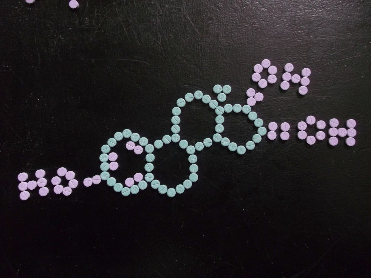 Ösztrogén molekula képe, a hormont tartalmazó gyógyszerekből kirakva (Kép: healthmindandlife.com)