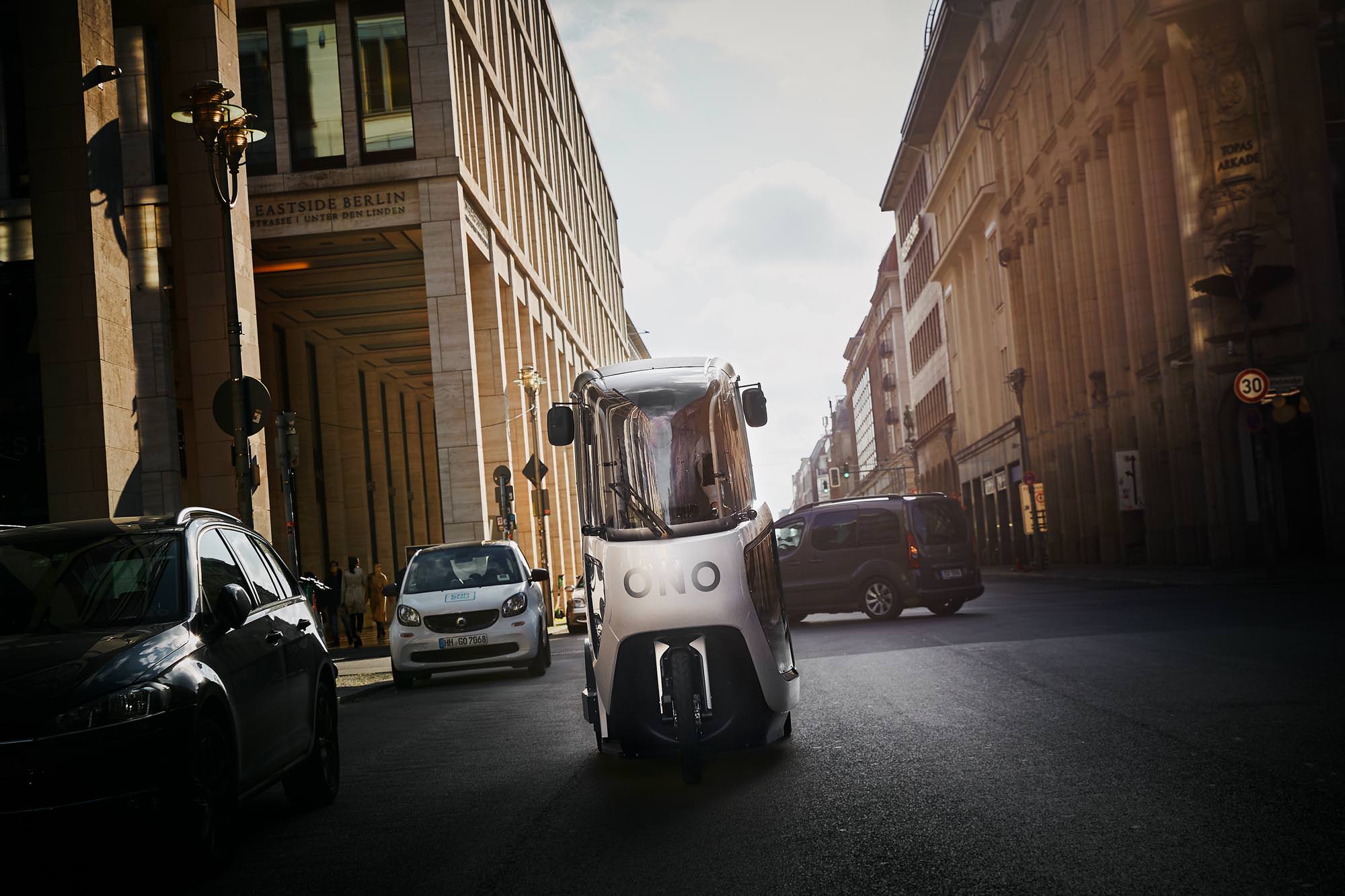 Az Ono egy fedett, teherszállításra alkalmas elektromos bicikli, illetve tricikli, aminek külső borítása és a hátsó részre csatlakoztatható tárolóegysége nagyrészt elfedi a pedálokat, így kívülről inkább valamilyen fajta kisebb furgonnak tűnik, mint kerékpárnak. A jármű a működése tekintetében is hasonlít egy teherszállítóra: igaz, hogy a meghajtása emberi erőt igényel, de a motoros rásegítés jelentősen megkönnyíti a "sofőr" dolgát: 6 km/h-ás sebességre magától gyorsul indítás után és az 1,4 kWh-ás akkumulátorcsomag 30 kilométeren át nyújt segítséget a pedálozáshoz.