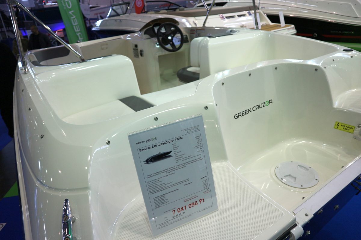 A Balatonon viszont, ahol (mint a hazai állóvizeken általában) hivatalosan többnyire csak elektromos hajtású motoros hajókkal szabadna közlekedni, már a legnagyobb kategóriákban is meglepően sok ilyen jármű szolgál. Olyannyira, hogy az egyik kiállító szerint itt már a kikötői kapacitások jelentik a további piacbővülés fő korlátját. Ebből a hajóból álítólag már hat vagy hét darab is siklik a maga csendes méltóságteljességében a Balcsin: