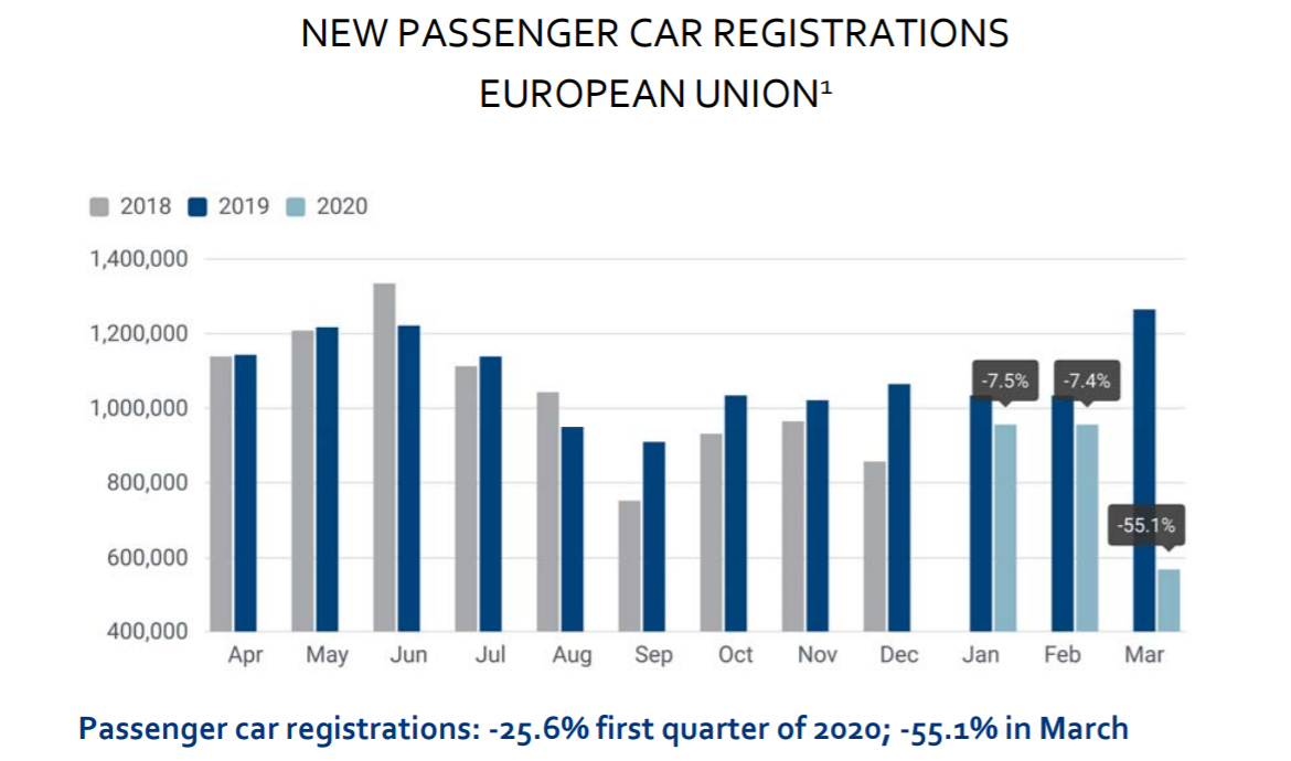 És persze az is benne van ebben a megosztottságban, hogy a német piacon kevésbé drasztikus a visszaesés, szemben a déli vidékkel. Míg a németeknél "csak" 37,7%-os a forgalomcsökkenés idén márciusban 2019 azonos hónapjához képest, ez az érték Franciaországban 72,2, Olaszországban 85,4%, ami elsősorban természetesen a francia és olasz gyártókat viseli meg.
