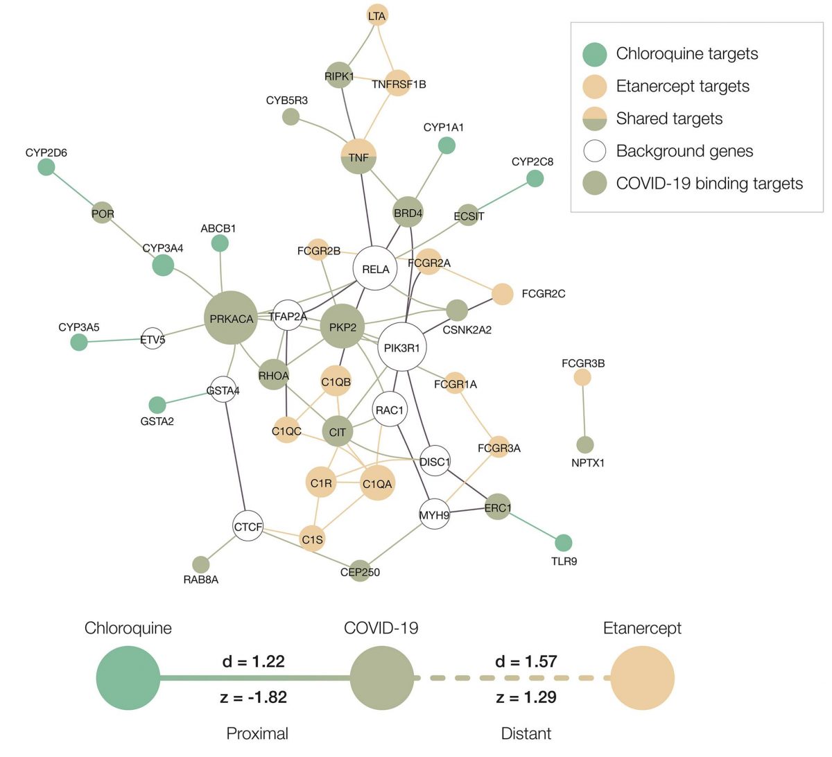 “A hálózati gyógyászat lehetővé teszi számunkra, hogy jellemző profilt készítsünk bármely gyógyszer vagy gyógyszercsalád potenciális hatékonyságáról, függetlenül attól, hogy szerepel-e a végleges listánkban. Mindegyik gyógyszerhez gyorsan elkészíthető az egyoldalas profil, hogy kiderüljön annak molekuláris kapcsolata a COVID-19-hez (ha van ilyen kapcsolat).