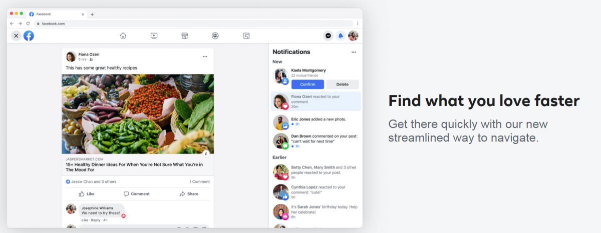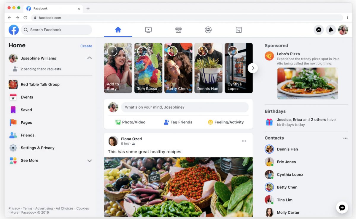 A szülinapok nem tűntek el, csak lejjebb kerültek, oda viszont a marketplace widget, valamint az ajánlott ismerősök és oldalak. A fejléc alatti sáv is jelentősen átalakult, hangsúlyos lett a Home ikon melletti másodikként szereplő Videók, ez nyilvánvalóan a saját video-platform és tartalmak fókuszba helyezését is jelenti (a "saját" az mi vagyunk, a mi videóink a Facebook videói is, nem tudom érthető-e, mint egy ingyen behopp a swingerklubba, ha visszük az asszonyt is.)