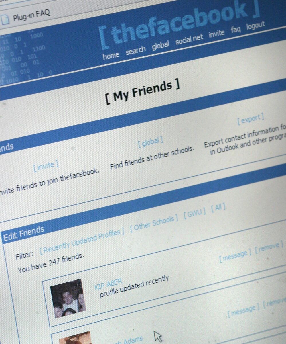 A Facebookot (The Facebookot) 2004-ben azzal a céllal indította el Mark Zuckerberg egyetemi társaival együtt, hogy összekösse egymással a Harvard diákjait egy egyszerű közösségi platform révén. Az oldal eleinte egészen minimalista módon működött: nem voltak játékok, posztok, hírek, linkek, sem messenger, csak a felhasználók, akik bejelölhették egymást ismerősnek. A platform zártkörű volt, csak a Harvard hallgatóinak szólt és mindössze ennyit nyújtott az emberek számára: a lehetőséget, hogy online felületen is kapcsolatba léphessenek egymással, láthassák, ki kinek az ismerőse és vizuálisan is megjelenítsék a kapcsolati hálójukat. Az oldal azonban már ekkor is könnyen addiktívvá válhatott, így hamarosan megkezdődött a nyitás más egyetemek és másfajta funkciók felé is. A lényeg azonban a helyi, zártabb és biztonságosabb közösségek kialakítása volt, a valós barátságok kiterjesztése.