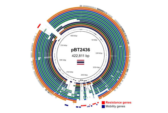 A long-read sequencing felhasználásával a kutatók elolvasták két szoros rokonságban álló megaplazmid teljes génszekvenciáját (> 420 kb), amelyek nagy mennyiségű antibiotikum-rezisztencia gént tartalmaztak, kiterjedt sokszorosítási és rekombinációs események bizonyítékaival.
