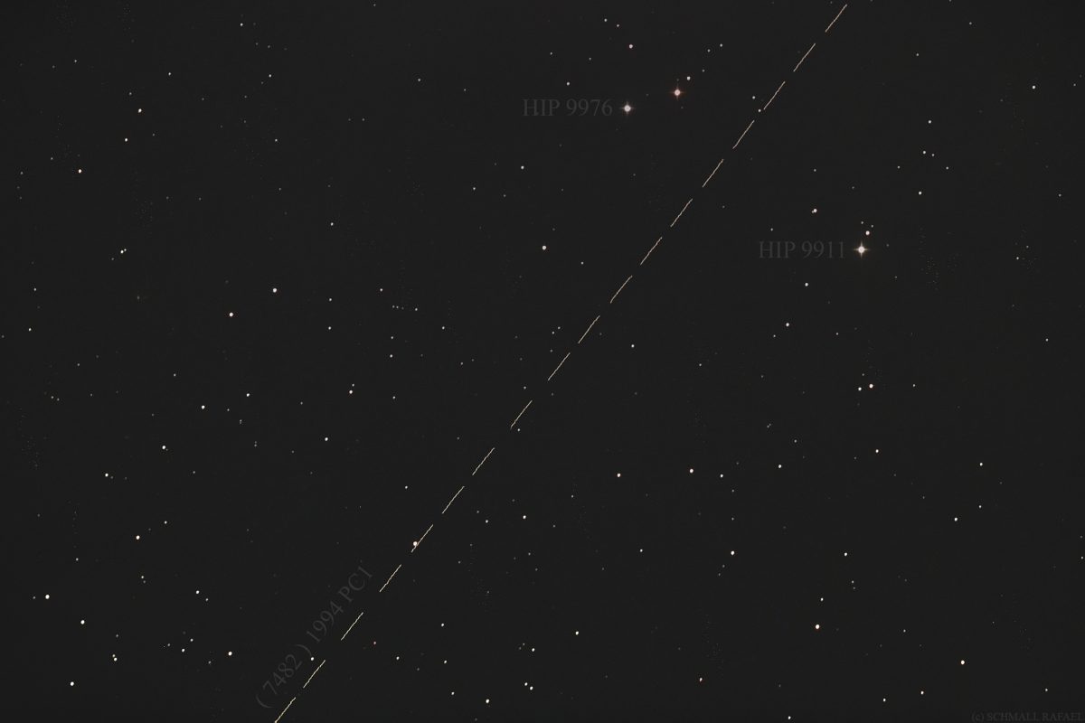 "A képen a kisbolygó mozgása kissé hullámzó. Ez nem valós effektus, a kisbolygó ellipszis alakú pályán mozog a Naprendszerben, aminek égi vetülete egy egyenes kellett volna, hogy legyen egy-egy éjszaka folyamán.