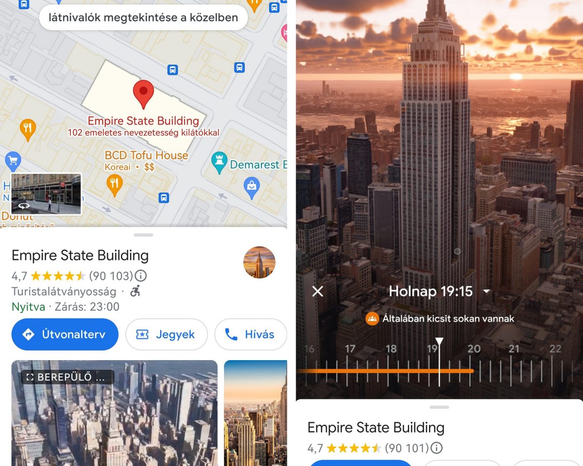 A Google tavaly májusban jelentette be, hogy a térképalkalmazásuk hamarosan egy olyan új funkcióval gazdagodik, amelynek segítségével három dimenzióban repülhetjük körbe a nevezetes épületeket, mintha azok rendkívül részletesen kidolgozott makettek lennének. Az immerzív látványt végül idén februárban kezdték el elérhetővé tenni a felhasználók számára, és bár Magyarországon egy kicsit még várni kellett rá, hogy megjelenjen az új funkció, a legutóbbi frissítés után már mi is megcsodálhatjuk, hogy milyen madártávlatból a londoni Westminster palota, a San Franciscó-i Golden Gate híd vagy a New York-i Empire State Building.