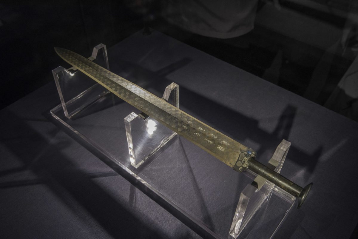 Míg az ősi sírok temérdek, több mint kétezer értékes lelettel és ősi műtárggyal szolgáltak, az egyik sír díszeként egy érckoporsóba temetett csontváz mellől szenzációs fegyver került napvilágra, amelynek szerkezete és élessége semmit sem változott az eltelt két millennium alatt.