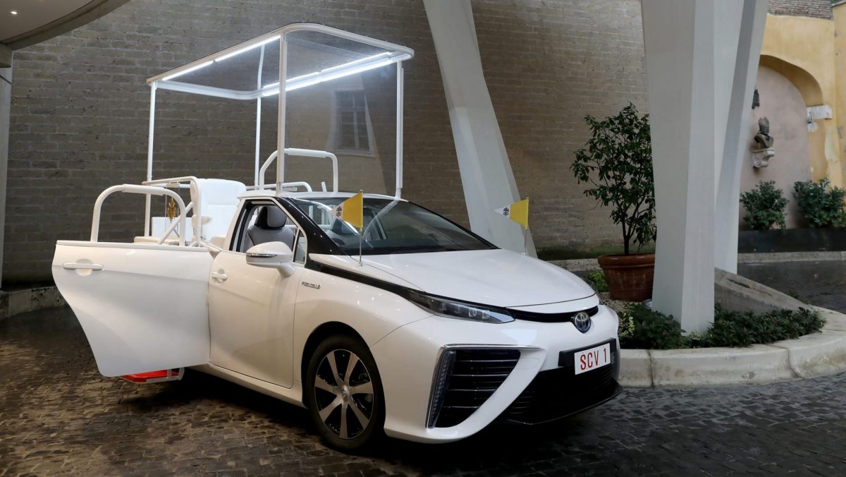 A katolikus egyházfő a Japán Katolikus Püspöki Konferenciától kapta a kocsit. A pápamobillá alakított, hidrogénhajtású Toyota Mirai japán is, praktikus is, jövőbe mutató is és remekül passzol Ferenc pápa köztudott környezettudatosságához.