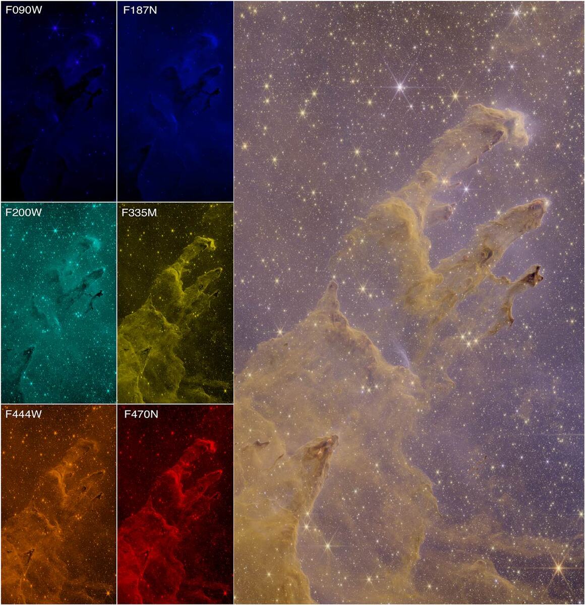 A szakemberek James Webb Űrteleszkóp felvételeinek színezése során például a következőképpen dolgoznak a JWST oldalának leírása szerint: