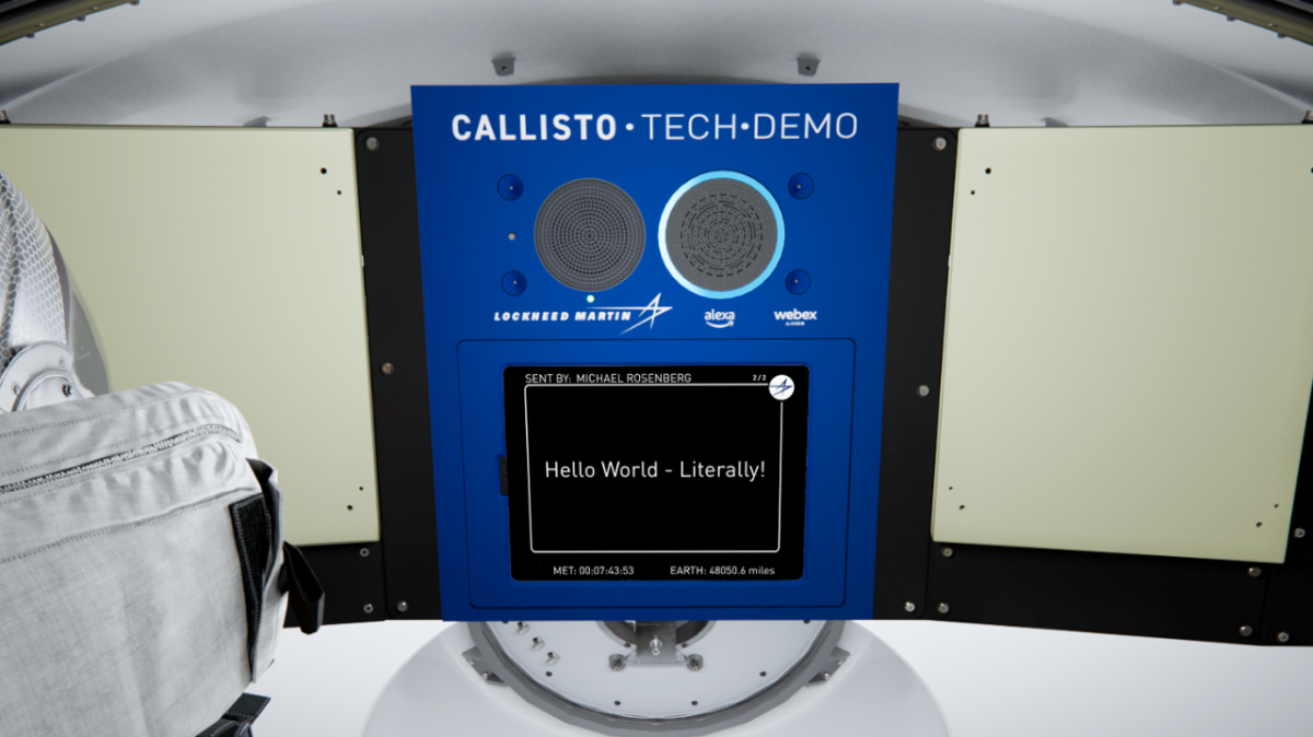 A Callisto, amelyet az Artemis I misszió keretében tesztelnek először űrbeli körülmények között, a Lockheed Martin, a Cisco és az Amazon közös munkájának eredményeként jött létre: a rendszer a Cisco videókommunikációs platformjából és szoftveréből, az Amazon Alexa hangasszisztenséből és Lockheed Martin által biztosított hardverelemekből áll össze. Célja, hogy demonstrálja egy olyan rendszer működőképességét, amely, a Lockheed leírása szerint, a mélyűri technológia új hajnalát hozhatja el, vagy, ahogy Howard Hu, az Orion helyettes programmenedzsere mondta: