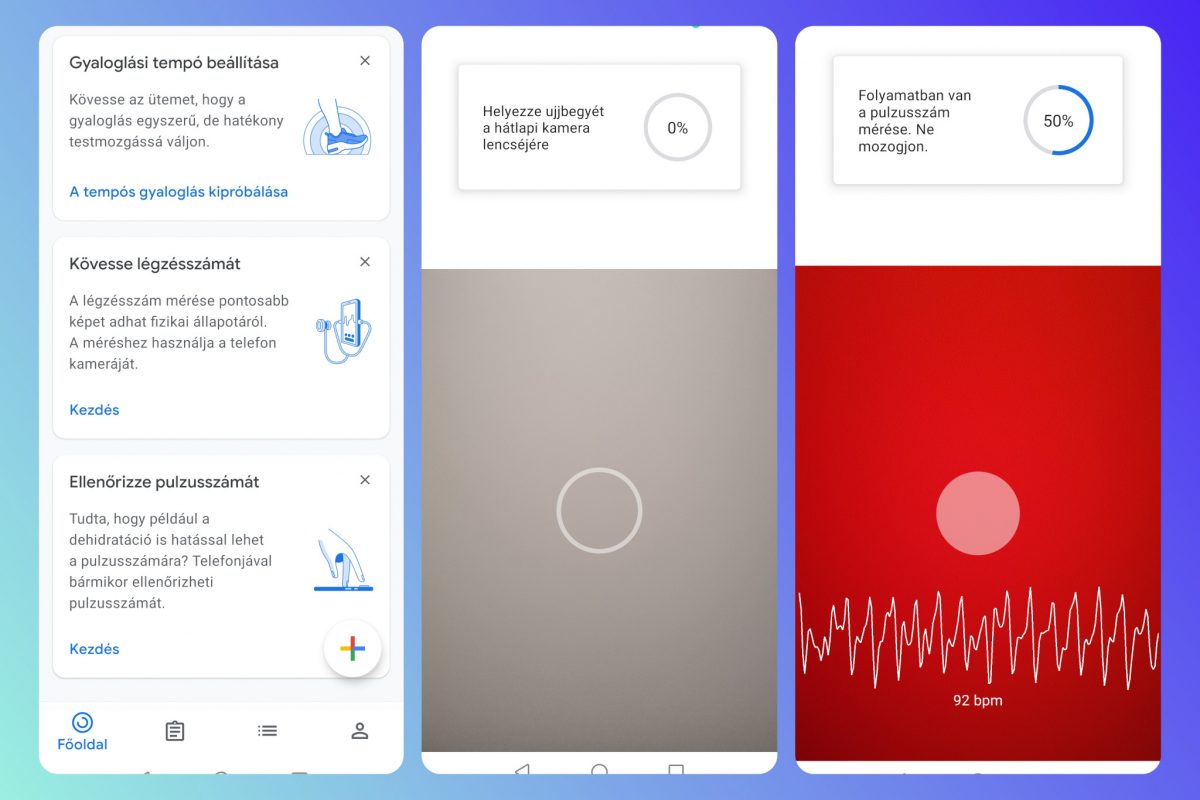 A 9to5Google-ön olvastunk arról, hogy míg az év elején még csak a Google saját gyártású Pixel telefonjain volt elérhető, most minden Android és Apple készülékre megérkezik ez a megoldás. A pulzusszám méréséhez az ujjunkat a hátlapi kamerához kell érintenünk, mert az app azt figyeli, hogy hogyan változik a vérünk áramlásának hatására a bőrünk színe. Persze ez nem mai ötlet - már évekkel ezelőtt le lehetett tölteni hasonló alkalmazásokat az App Store-ból. Viszont azóta a telefonok kamerái és a mesterséges intelligenciával segített algoritmusok is hatalmas fejlődésen mentek keresztül, így valószínűleg a mérések pontossága is javult. Nálunk stimmelni látszottak az értékek, illetve egybevágtak azzal, amit a Huawei okosóránk erre a célra kifejlesztett szenzorai mértek.