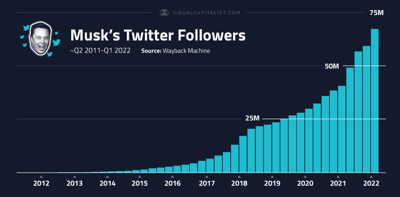 Az infografikákkal foglalkozó Visual Capitalist oldalán jelent meg egészen rendhagyó új grafikon, ami a SpaceX és Tesla alapító Elon Musk összes tweetjét ábrázolja. Az infografikából megtudhatjuk, hogy mik a legnépszerűbb témái a tech-gurunak, illetve, hogy hogyan változtak a tweetelési szokásai az évek során. Ehhez a Visual Capitalist munkatársai több mint tizenötezer Elon-tweetet kellett elemezniük. Elon Musk mostara már több mint 77 millió követővel rendelkezik a Twitteren, ezzel a tizenegyedik legnépszerűbb személy a platformon, bejegyzéseire minden egyes alkalommal ezrek reagálnak. Manapság nem ritka, hogy Musk akár napi harminc tweetet is megoszt, ráadásul ezek egy része komolytalan, viccelődős poszt, ami szokatlan egy hozzá hasonló pozícióban lévő embertől.