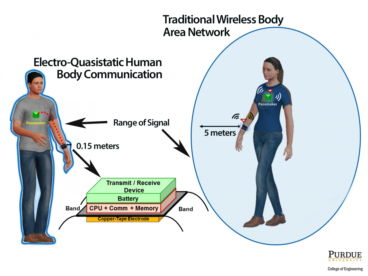 A megoldás, egyszerre mindkét problémára, a Purdue Egyetem kutatóinak találmánya, mely az emberi testet drótozza be és változtatja a digitális információ továbbítójává.