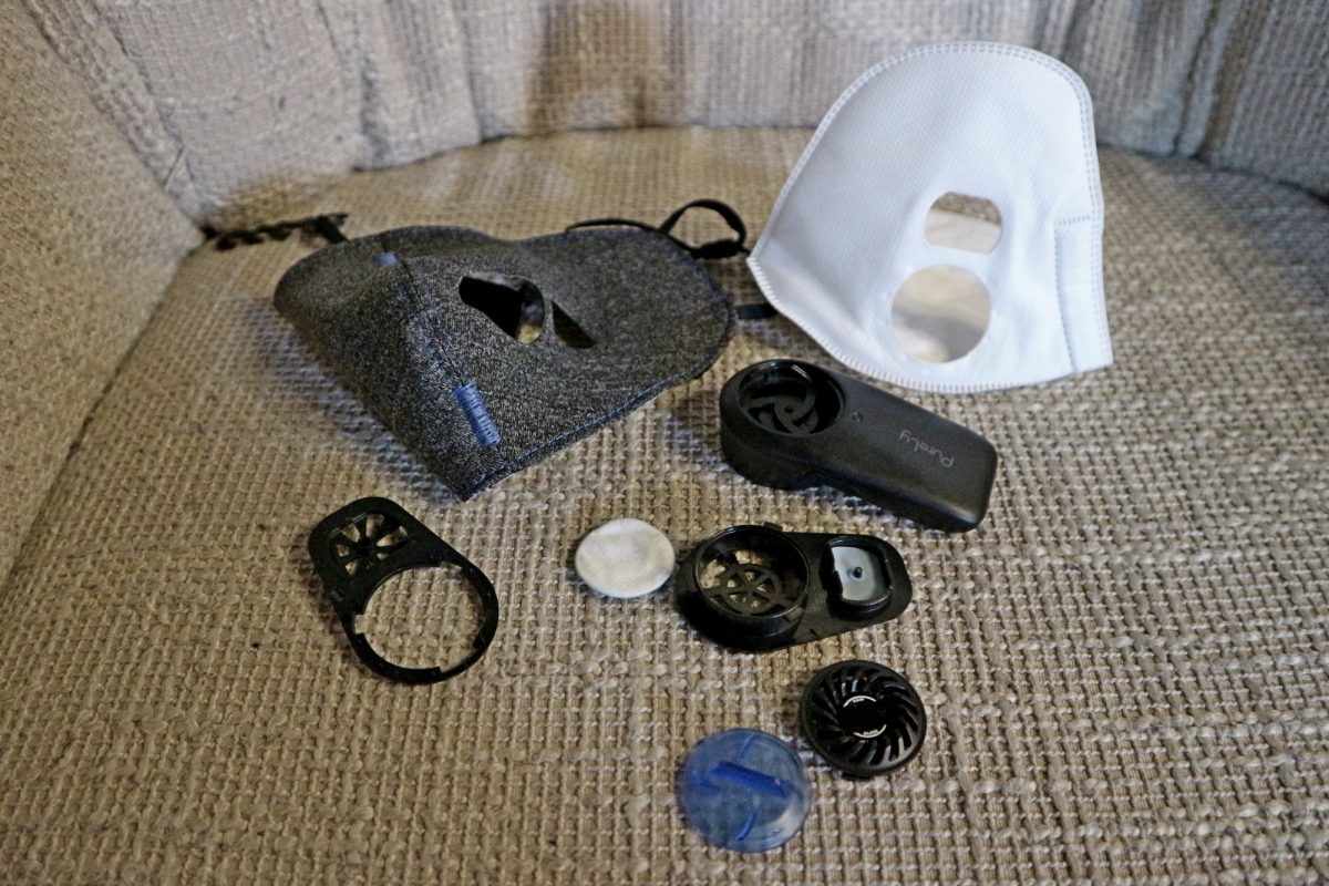 A Purely könnyen szétszedhető, az illesztések egyszerűek, pattintósak vagy bajonettzár-szerűek, de a műanyag tartósnak tűnik, bizonyosan sok száz pattintást, bekattintást kibír. Az akku micro USB-csatlakozón keresztül, szabványos 5 voltos töltővel tölthető. Az N95 szabványú (tehát a 2,5 mikronnál kisebb részecskék minimum 95%-át megfogó) kis filterkorong cseréjét 24 üzemóránként javasolja a gyártó. A korongból ötöt kapunk az alapcsomaggal, de aki nem akarja megrendelgetni a gyári szűrőt, szaküzletben akár négyzetméterszám is vásárolhat megfelelő specifikációjú textilt, amiből kivagdoshatja a korongokat. A maszk belső, nagy szűrőeleméből egy tartalék van a dobozban de ez is rendelhető a gyártótól, és ahogy elnézem, pár mosást biztosan ki is bír. A ventilátor élettartamát minimum 30 ezer órában adja meg a gyártó, tehát ha a koronavírus-járvány még elhúzódik tíz évig és minden nap nyolc órában viseljük, akkor sem megy tönkre.