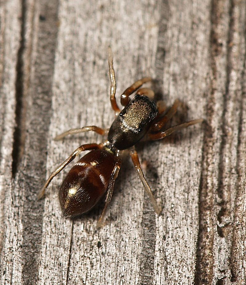 A válasz: a hangyautánzó nem akar hangya lenni, viszont szeretne hangyának látszani, egyrészt védelmi okból, másrészt a vadászat miatt. Méretükben is a társas rovarokat utánozzák: a nőstények körülbelül 4 milliméter nagyságúak, a hímek alig kisebbek: 3 milliméteresek.