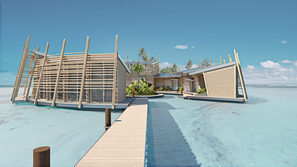 Az UOOU nevű nemzetközi építésziroda viszont nemrég egy egészen más ötlettel rukkolt elő, amivel legalábbis elhalaszthatnák a költözést: az általuk tervezett épületek ugyanis nem a szárazföldön állnának, hanem a vízen lebegnének. A terv szerint ezzel jelentős hely szabadulhatna fel a még meglévő szárazföldön, ami alkalmas lenne növények termesztésére és állattenyésztésre, a lakóházakat pedig a helyben található alapanyagokból is fel lehetne építeni. Az épületek a sziget energiaellátását is megoldanák, ugyanis mindegyik tetején napelemeket helyeznének el, a ferde tetők pedig emellett arra is alkalmasak lennének, hogy összegyűjtsék az esővizet, amit a házak alatt található tartályokban tárolnának.