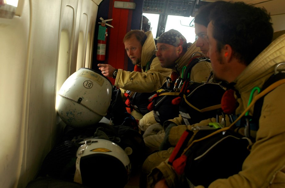 Miután egy különlegesen kiképzett, tapasztalt csapattag kijelöli a tűz közelében lévő földi helyszínt, a tűzoltók kiugranak az akár 900 méteres magasságban haladó repülőgépből, a felszerelésüket pedig külön dobják utánuk. A kanadaiak esetében az eszközök között van négy láncfűrész, kéziszerszámok, négy nehéz szivattyú, 1829 méternyi tömlő és 48 órára elegendő víz a csapat minden tagjának. Minden füstugrót ballisztikus kevlárruhák védenek az éles tárgyak, faágak, valamint az intenzív hővel szemben, sisakjaik pedig hálós arcvédővel rendelkeznek, de sokan közülük extra „páncélzatot” is viselnek, például hokis, vagy motocross védőfelszerelést. Az ejtőernyővel együtt egy füstugró körülbelül 40-50 kilogramm plusz terhet visel a bevetés során.