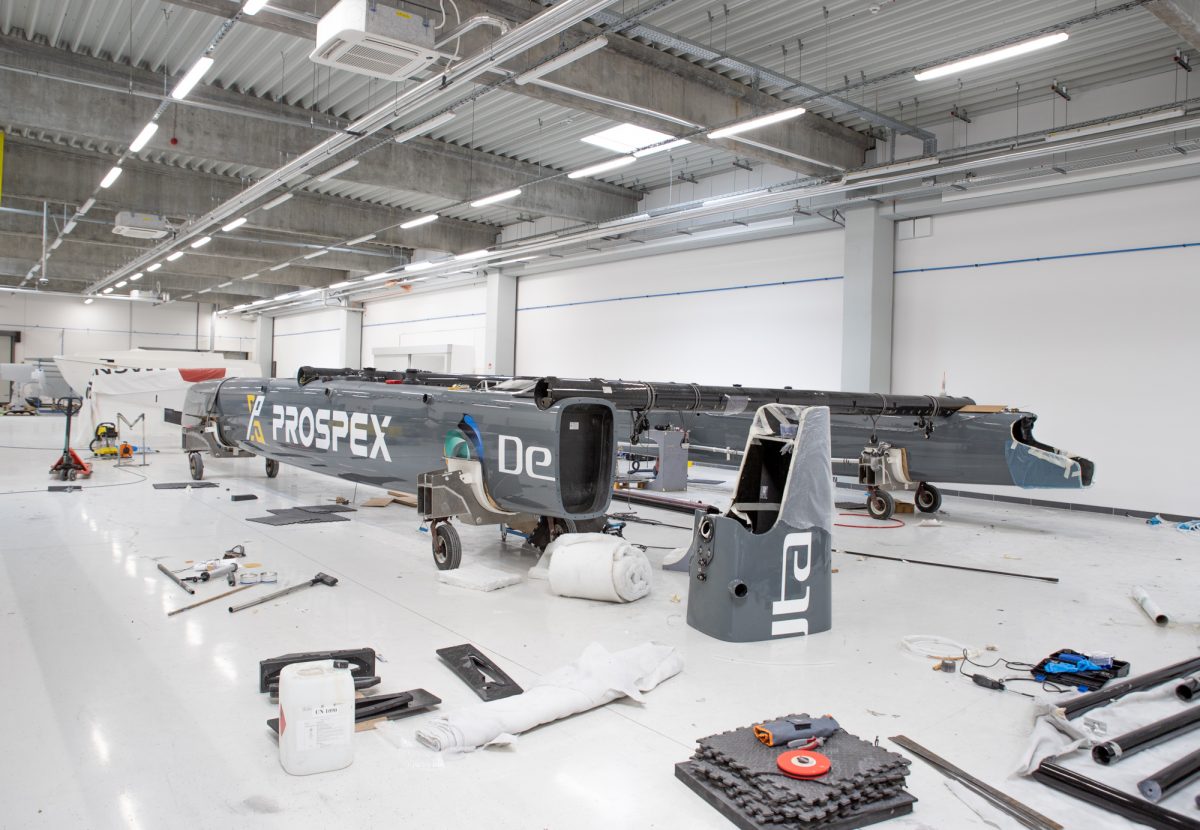 A Magnus többek között gyárt már olimpiai minősítésű, egy- és négyüléses kajakokat is, a mini jachtjuk a prototípusán pedig jelenleg is dolgoznak. De ők készítik a Prospex-Delta Team katamaránját is a következő Kékszalagra, ami ottjártunkkor már egészen előrehaladott állapotban volt.