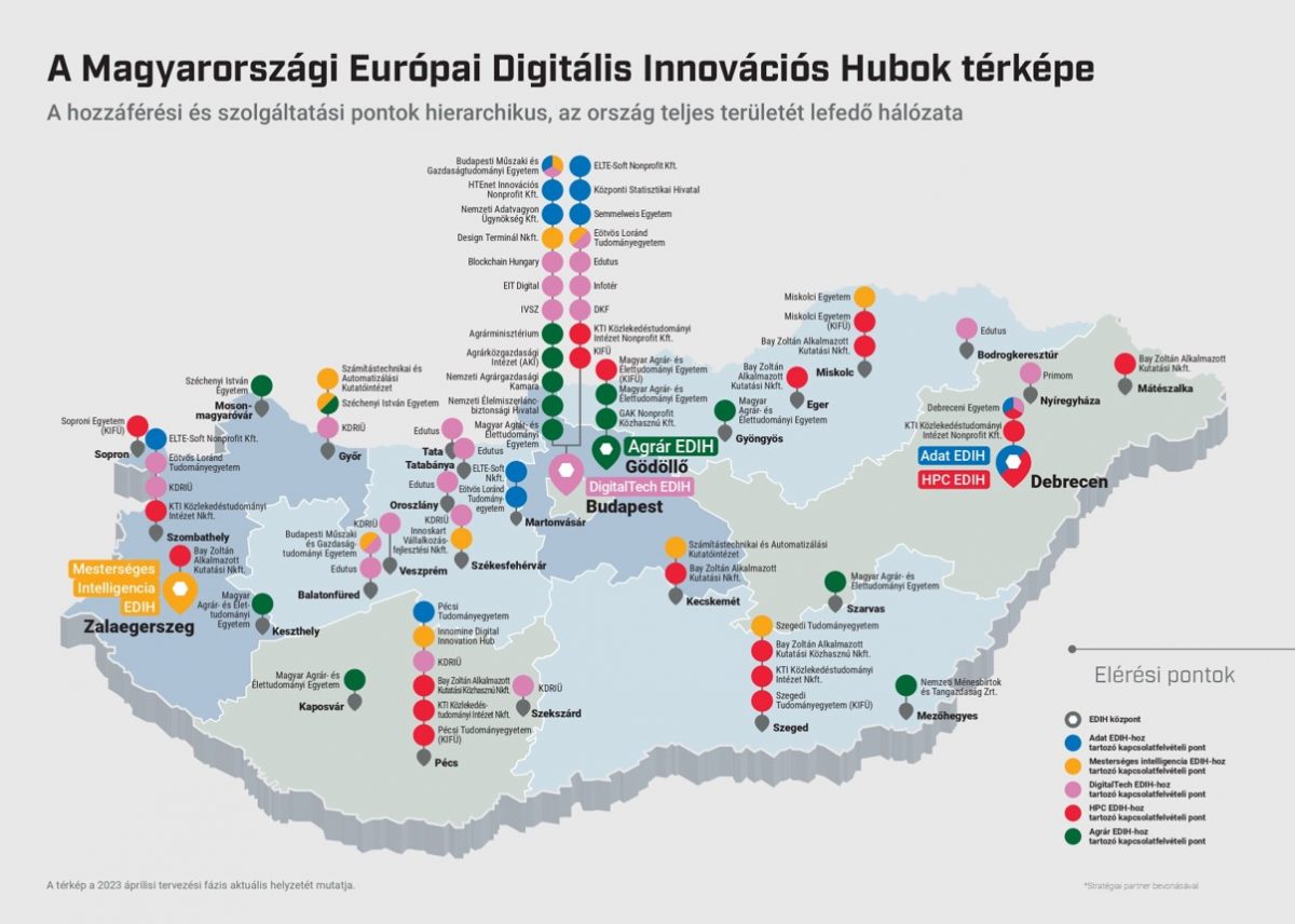 Magyarországról az első fordulóban három, a másodikban pedig további kettő pályázat nyert támogatást, így végül öt EDIH kezdheti vagy kezdhette meg a működését, amelyek a nagy mennyiségű adatfeldolgozás, az agrártevékenységek digitalizációja, a szuperszámítógépek, a mesterséges intelligencia valamint az üzletfejlesztést, a blockchain-megoldásokat, a fintechet, a kiberbiztonsági technológiákat és az edtechet magában foglaló "digital tech" területén folytatják a tevékenységüket. Szentkirályi-Szász Krisztina, a Neumann Platform állandó szakértője elmondta, hogy az öt magyar EDIH összesen 22,251 milliárd euró támogatást kapott az EU-tól az első hároméves ciklusra, ha pedig ebben a három évben a központok elérik az EU által meghatározott minőségi kritériumokat, akkor további két évnyi finanszírozásra válnak jogosulttá. Szentkirályi-Szász hangsúlyozta, hogy ezeknek a központoknak a célja már nem az innovatív megoldások kidolgozása, hanem a tudástranszfer, vagyis hogy a már létező megoldásokat eljuttassák a megfelelő helyre, ezzel segítve elő a gazdaság és a társadalom digitalizációját. Az EDIH-ek számtalan különböző módon fogják segíteni a hazai vállalkozásokat, többek között lehetőséget biztosítanak arra, hogy a vállalatok kipróbálhassanak egy bizonyos technológiát, mielőtt beruháznának annak megvételébe, segítik a digitális készségek és képzések fejlesztését, támogatják a vállalkozásokat a beruházók megtalálásában és részt vállalnak a hálózatépítésben az innovációs ökoszisztéma kiépítésével.
