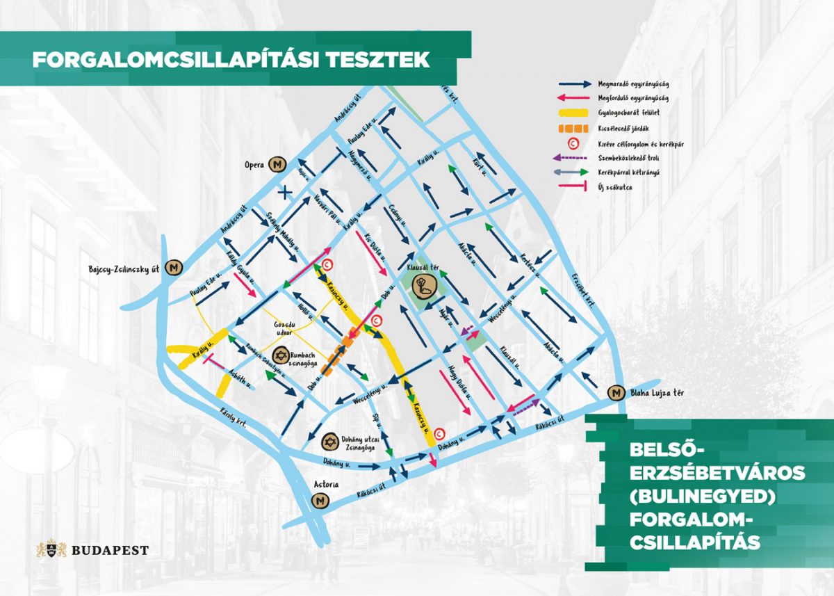 A most bejelentett intézkedések között akad olyan, ahol a megengedett legnagyobb sebességet korlátozzák, és olyan is, ahol a gépjárművek teljes kitiltásával sétálóutcákat alakítanak ki. Utóbbiak között említhető Belső-Erzésbetváros, ahol a Kazinczy utcát teszik teljesen autómentessé, emellett a Király utca kiskörút és Rumbach Sebestyén utca közé eső része is sétálóutcává válik. Az Andrássy úton a szervizutakat zárják majd le a Rózsa és a Vörösmarty utca között az autóforgalom elől, a felszabaduló területen kulturális programokat, kiállítást fognak tartani és utcabútorokat is kihelyeznek. A Szentendrei út ás a Vörösvári út egy-egy rövidebb szakaszán 60 km/h-ról 50-re csökken a megengedett legnagyobb sebesség, és hasonló korlátozásokat vezetnek be az Üllői út Könyves Kálmán körút (Hungária) és határ út közötti szakaszán.