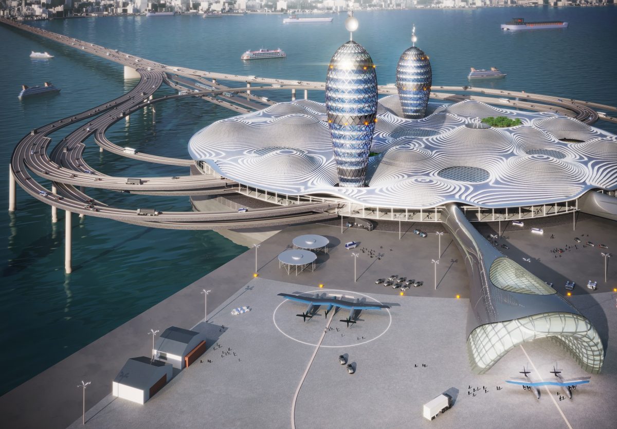 A Space Port Japan nevű nonprofit szervezet viszont most a Dentsu kommunikációs ügynökséggel, a Canaria dizájncéggel és a Noiz Architects építészirodával összefogva igazán nagyot álmodott, és megalkották a Spaceport City nevű projektet, ami azt vázolja fel, hogyan nézhetne ki egy vérbeli űrkikötő. A Tokiói-öbölben, egy mesterséges szigeten álló futurisztikus épület nem csak megjelenésében extravagáns, de felszereltségében is páratlan lenne, így azoknak is megérné kilátogatni a városból, akinek nincs még jegyük egy föld körüli járatra: a teljes egészében napelemekkel fedett, parkokkal és termőföldekkel tarkított épületben boltok, éttermek, múzeum, akvárium, diszkó és egy 4D IMAX mozi várná a látogatókat, akik a két toronyból gyönyörködhetnének a fel- és leszálló gépek látványán.