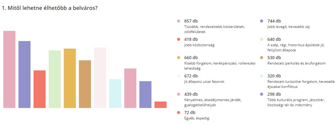 A tervezési folyamatnak három fontosabb mérföldköve van: a folyamat most ősszel indul tehát, és remélhetőleg 2021 tavaszára megszületik a koncepció. Az első lépés lényegében az állapotfelmérés, a második a célok kijelölése, a harmadik pedig a konkrét „intézkedések, projektjavaslatok, ösztönzők” kidolgozása. Magát a koncepciót a Fővárosi Önkormányzat szakcégeiből álló tervezőcsapat készíti majd el. Az önkormányzat célja ugyanakkor, hogy a koncepció a civil szervezetek és lakosság bevonásával történjen. Ennek része tehát az október 27-én elindult online kérdőív, amit november 11-ig lehet kitölteni. Itt pedig meg lehet tekinteni, miként áll a felmérés jelenleg, a válaszadók eddig milyen prioritásokat jelöltek ki a megújulás szempontjából.